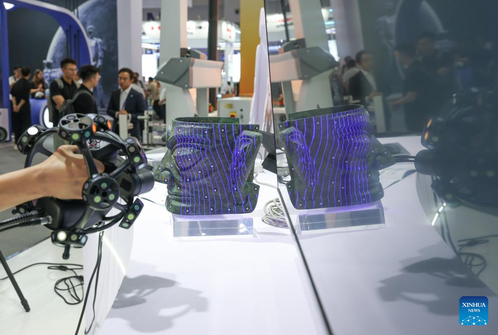 A staff member demonstrates a 3D tracking scanner during the World Smart Industry Expo 2025 in southwest China's Chongqing, Sept. 5, 2025. The World Smart Industry Expo 2025 kicked off on Friday in southwest China's Chongqing Municipality, bringing together more than 600 domestic and international businesses to showcase innovations across various sectors, including autonomous driving, smart homes and the low-altitude economy. (Xinhua/Chen Cheng)