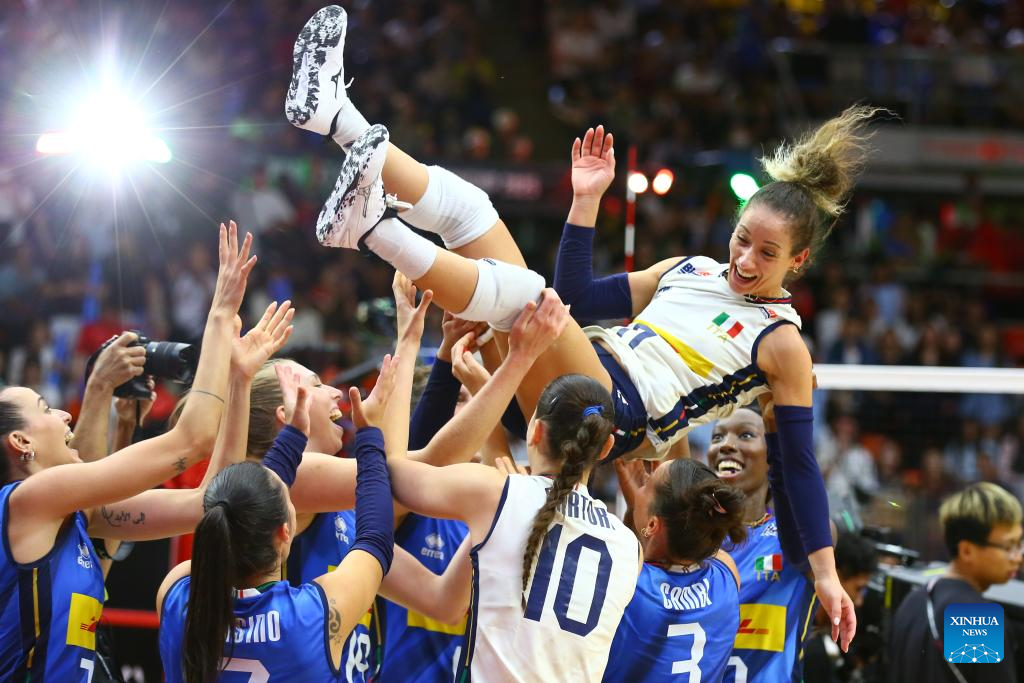 BANGKOK, Sept. 7 (Xinhua) -- World No. 1 Italy outlasted world No. 3 Türkiye here on Sunday to win its second FIVB Volleyball Women's World Championship title.