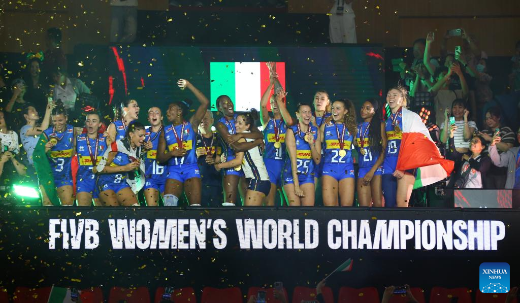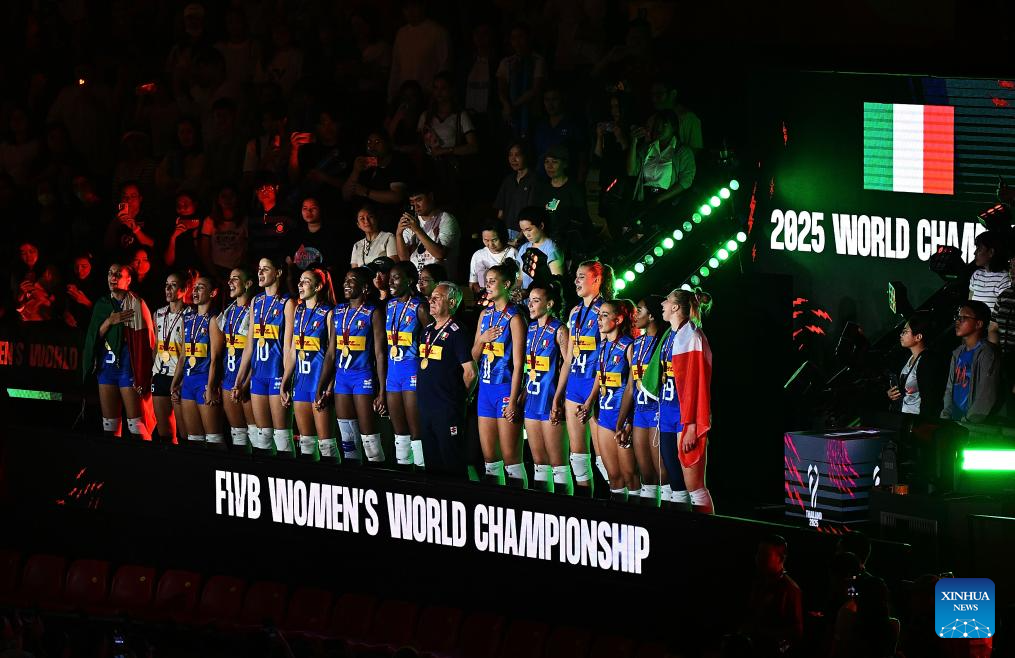 BANGKOK, Sept. 8 (Xinhua) -- World No. 1 Italy outlasted world No. 3 Türkiye on Sunday to win its second FIVB Volleyball Women's World Championship title.