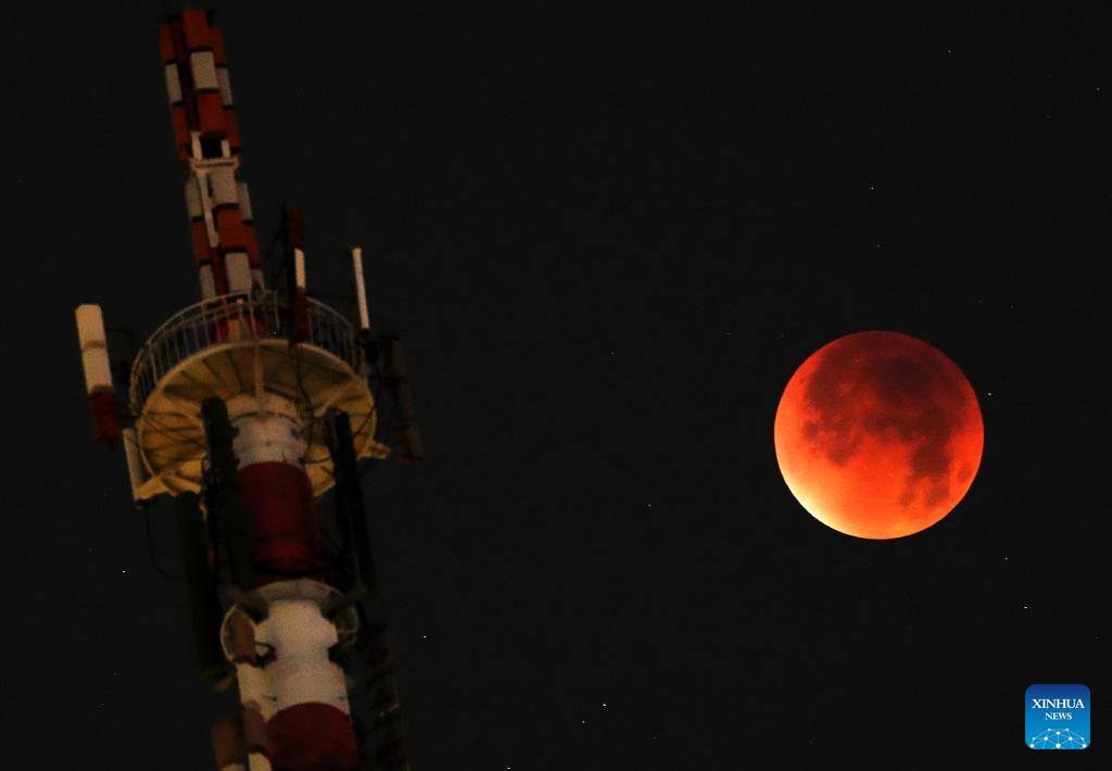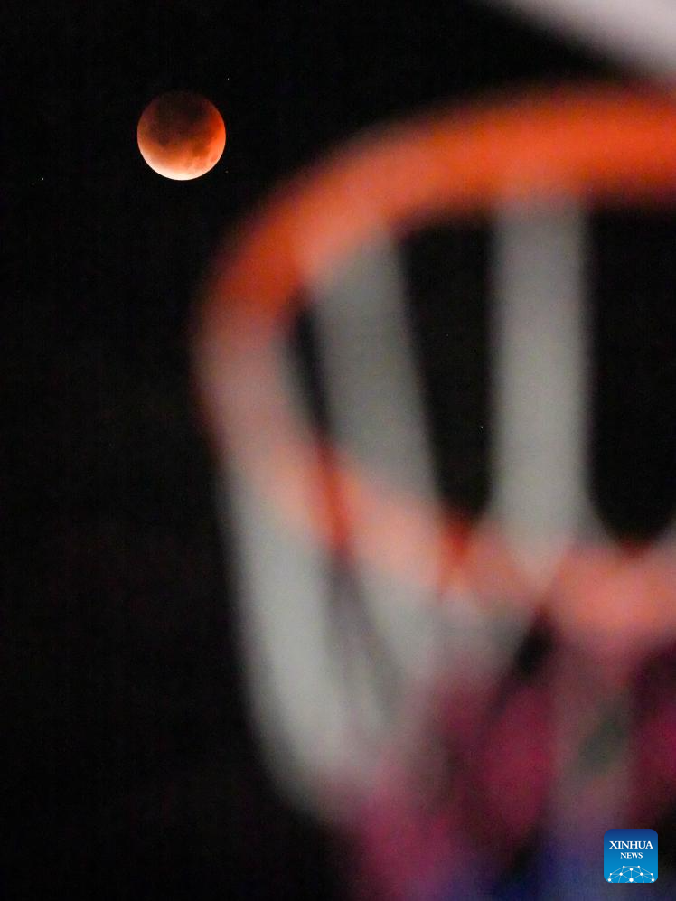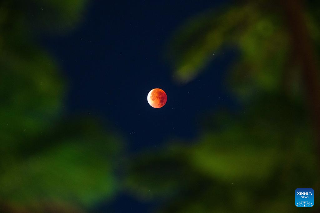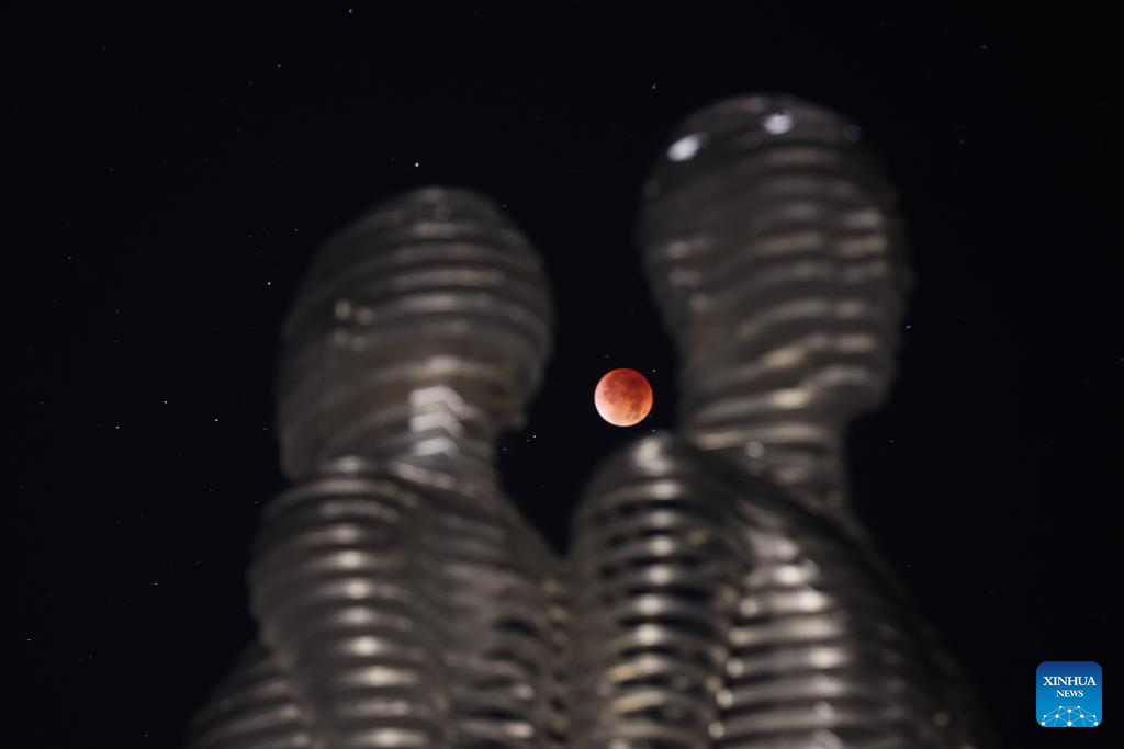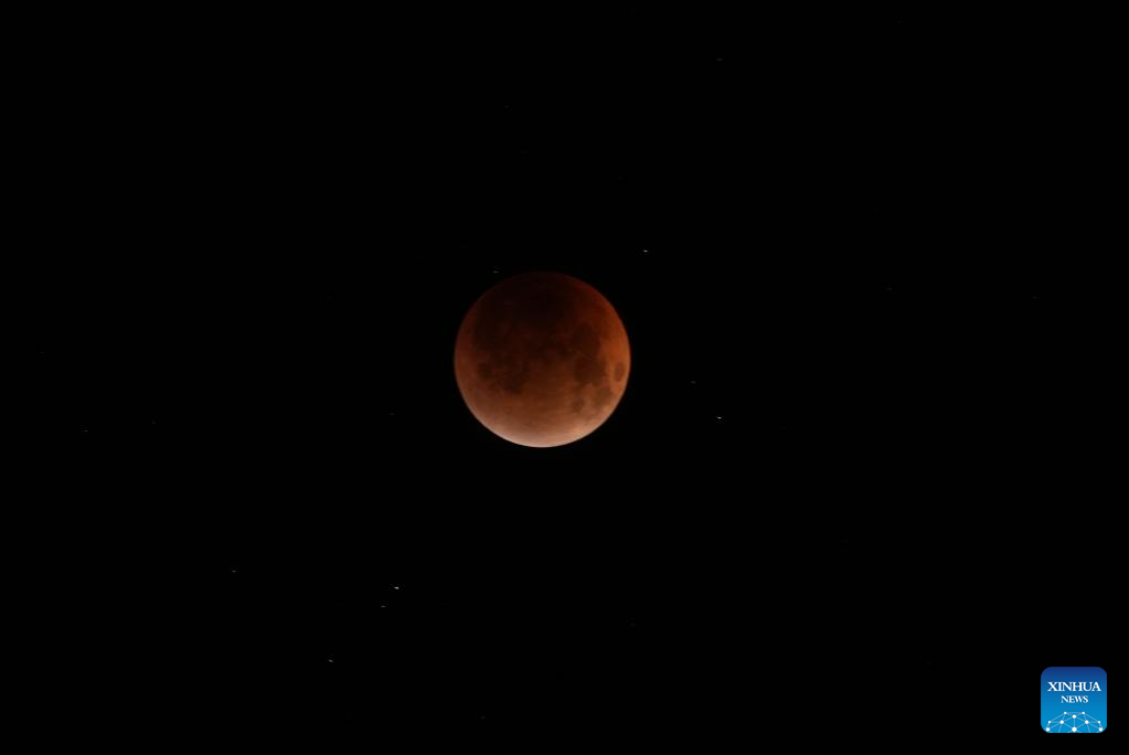 The moon is seen during a lunar eclipse in the sky over Wuhan, central China's Hubei Province, Sept. 8, 2025. A "red moon" was witnessed in many parts of the world during a total lunar eclipse started from Sunday night.