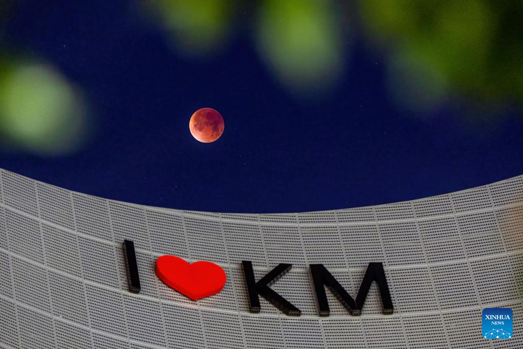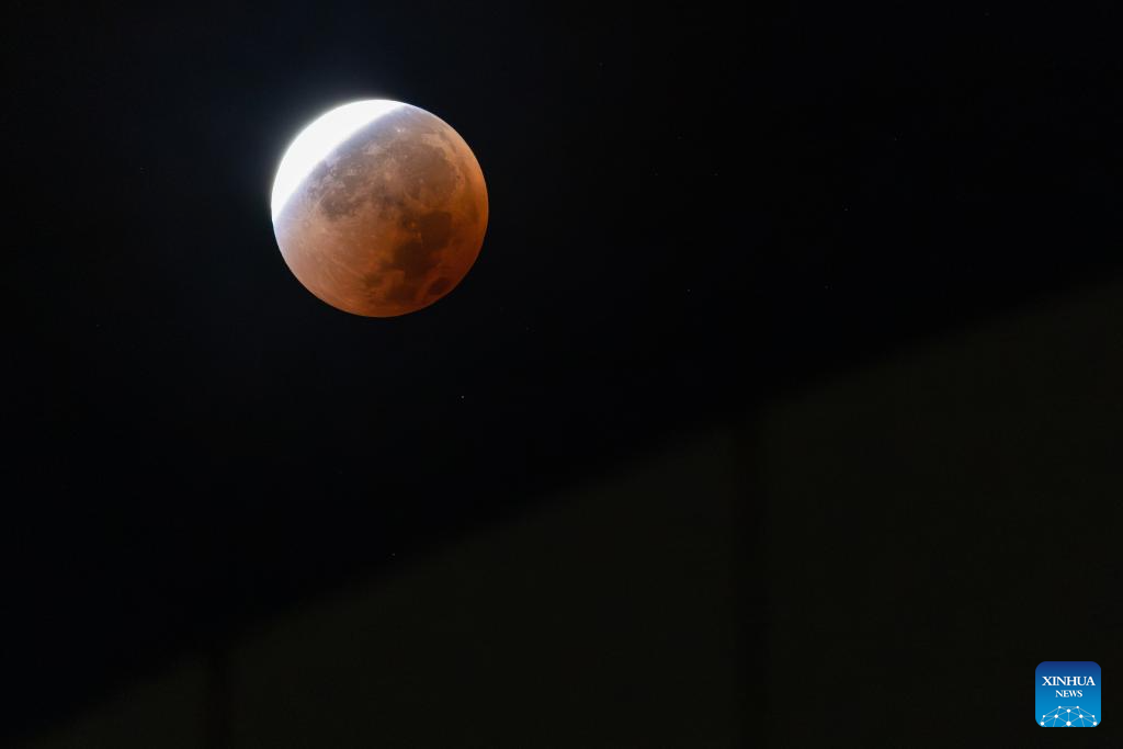 The moon is seen during a lunar eclipse in the sky over Kunming, southwest China's Yunnan Province, Sept. 8, 2025. A "red moon" was witnessed in many parts of the world during a total lunar eclipse started from Sunday night.