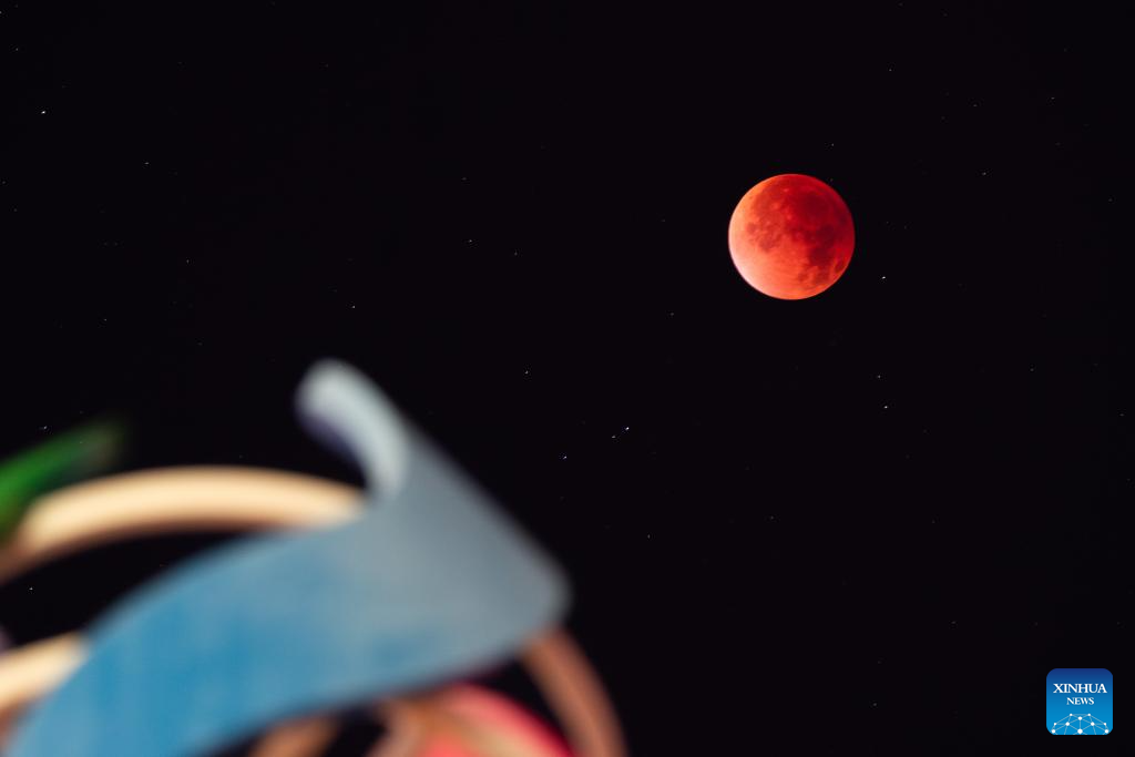 A total lunar eclipse occurs when the moon and the sun are on exact opposite sides of the Earth. (Xinhua/Jia Lijun)