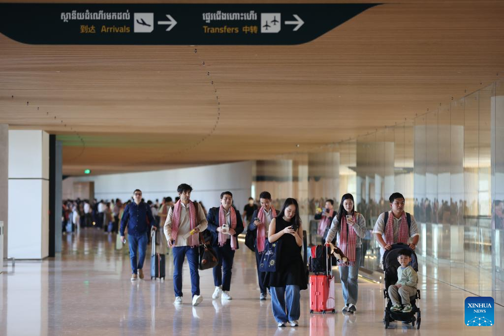 Passengers arrive at Techo International Airport (TIA) in Kandal province, Cambodia, Sept. 9, 2025. TIA, which is the new airport for Phnom Penh, the capital of Cambodia, commenced official operations on Tuesday, becoming the biggest airport in the Southeast Asian country. (Photo by Sovannara/Xinhua)