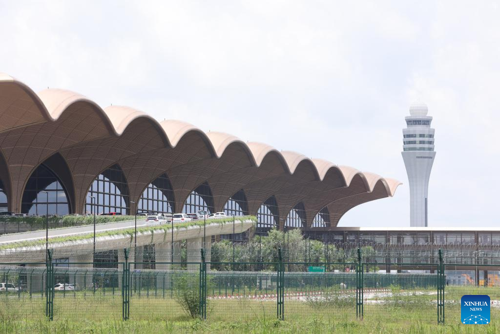 This photo taken on Sept. 9, 2025 shows an exterior view of Techo International Airport (TIA) in Kandal province, Cambodia. TIA, which is the new airport for Phnom Penh, the capital of Cambodia, commenced official operations on Tuesday, becoming the biggest airport in the Southeast Asian country. (Photo by Sovannara/Xinhua)