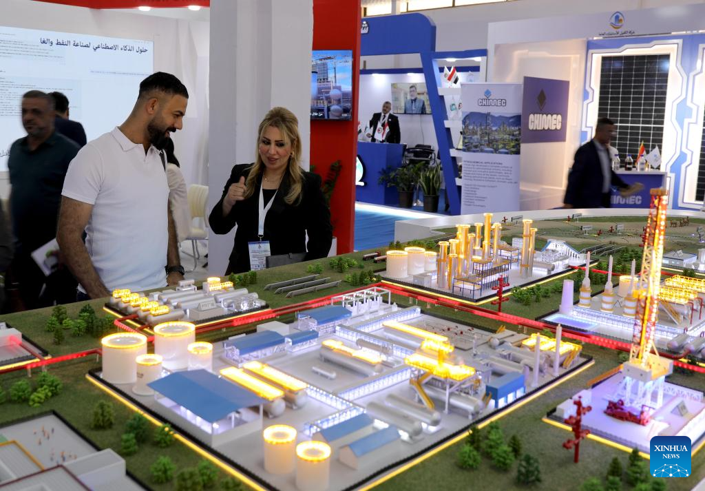 People visit the 3rd Iraq International Exhibition and Conference for Oil, Gas, and Renewable Energy in Baghdad, Iraq, Sept. 8, 2025. The 3rd Iraq International Exhibition and Conference for Oil, Gas, and Renewable Energy kicked off here on Monday. The four-day event focuses on the latest technologies in oil and gas extraction and renewable energy development. (Xinhua/Khalil Dawood)