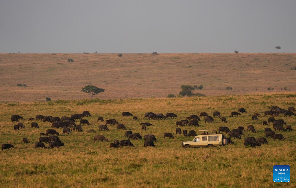 Buffaloes are pictured in the Masai Mara National Reserve in Kenya, on Sept. 6, 2025. Kenya's southwestern county of Narok is home to the world's famous Masai Mara National Reserve where tourists flock to during the country's peak tourism season from July through October to watch the wildebeest migration.