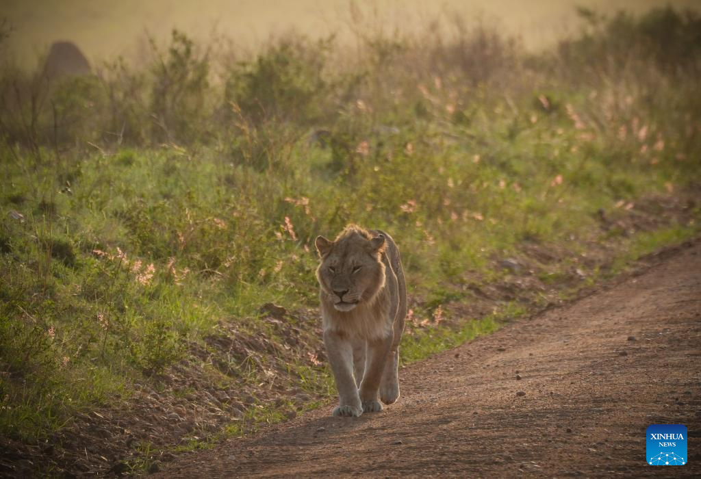 A lion is pictured in the Masai Mara National Reserve in Kenya, on Sept. 6, 2025. Kenya's southwestern county of Narok is home to the world's famous Masai Mara National Reserve where tourists flock to during the country's peak tourism season from July through October to watch the wildebeest migration.