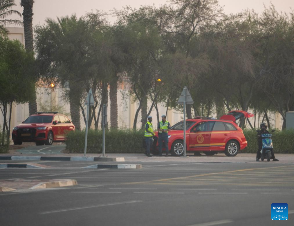 Security personnel are seen near the site of an Israeli airstrike in Doha, Qatar, Sept. 9, 2025. Israel launched an unprecedented airstrike in the Qatari capital of Doha on Tuesday, targeting a building used by senior Hamas officials in what Israeli authorities described as an attempt to assassinate leaders of the group. (Photo by Nikku/Xinhua)