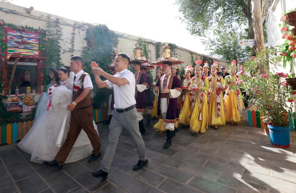 The Samawar dance was listed as an intangible cultural heritage of the Xinjiang Uygur Autonomous Region in 2007. Parhat, who has a deep love for this art form, is a key member of the Qiuci Alley's performance team. "This dance is the highest etiquette of our Uygur people for receiving guests," Parhat said. When the dance reaches its climax, he always invites the audience to join in, and joy merges with the music.