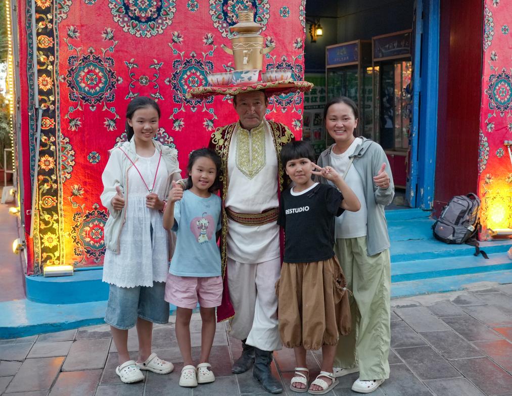 Looking at the bustling Qiuci Alley and the dancing crowd, Parhat's eyes crinkle with a smile. "Culture and dance are not supposed to be locked away in a chest," he said. In his opinion, the Samawar dance is endless like the snow water rushing down from the Tianshan Mountains. "The dance is alive. It is meant to be performed and passed on to the young."