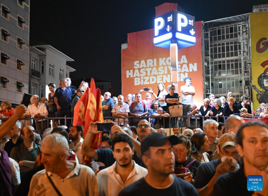 ISTANBUL, Sept. 10 (Xinhua) -- Tens of thousands of people rallied in Istanbul on Wednesday to protest a court decision that removed the leadership of the main opposition party's provincial branch, a move opponents have decried as politically motivated.
