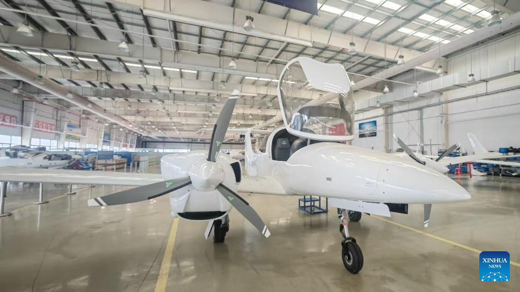 This photo taken on Sept. 6, 2025 shows the aircraft manufactured by CETC Wuhu Diamond Aircraft Manufacture Co., Ltd. in Wuhu, east China's Anhui Province. (Xinhua/Wang Fei)