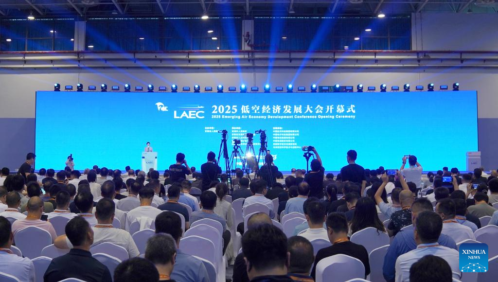 This photo taken on Sept. 5, 2025 shows the opening ceremony of the 2025 Emerging Air Economy Development Conference in Wuhu, east China's Anhui Province. (Photo by Xia Yuanyuan/Xinhua)