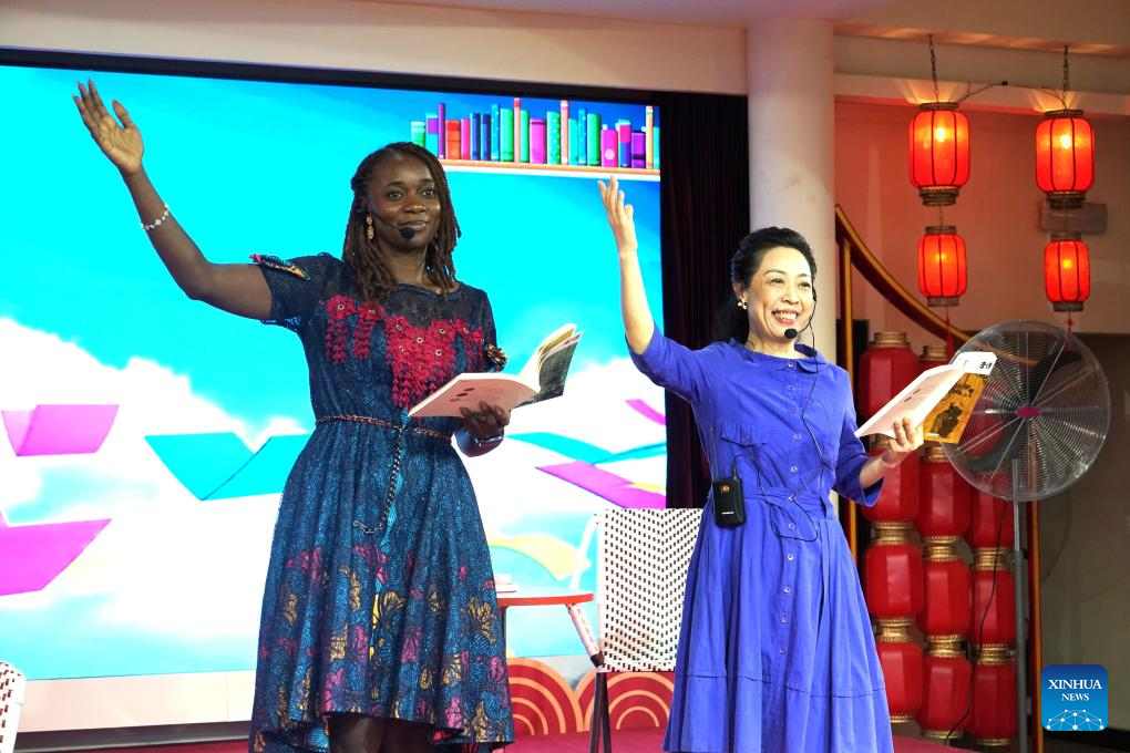 Chinese and Nigerian teachers jointly perform during the book donation ceremony at the China Cultural Center in Abuja, Nigeria, Sept. 11, 2025. (Nigeria China Cultural Center/Handout via Xinhua)