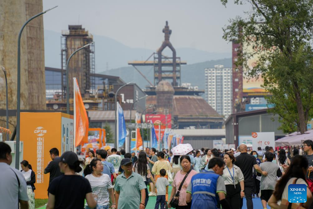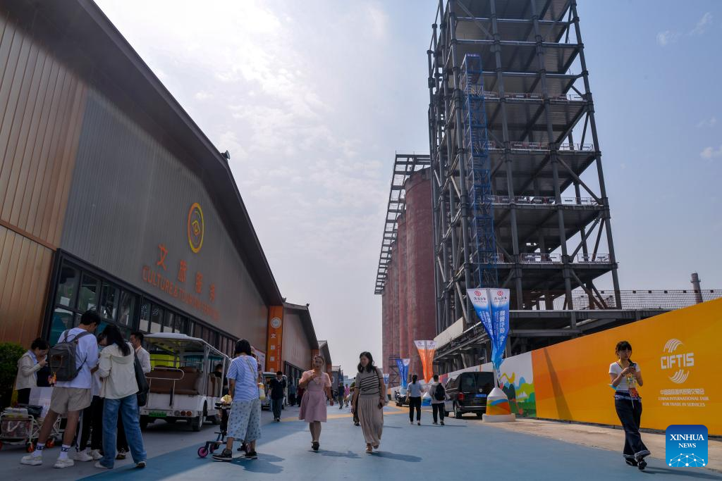 People visit the 2025 China International Fair for Trade in Services (CIFTIS) at Shougang Park in Beijing, capital of China, Sept. 13, 2025. The 2025 CIFTIS opens to the general public from Sept. 13 to 14. Visitors with reservation can access the fair free of charge. (Xinhua/Chen Yehua)