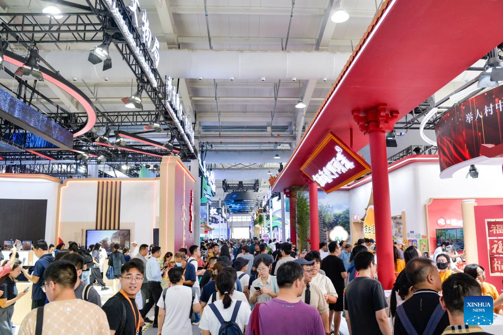 People visit the Cultural & Tourism Service thematic exhibition area of the 2025 China International Fair for Trade in Services (CIFTIS) at Shougang Park in Beijing, capital of China, Sept. 13, 2025. The 2025 CIFTIS opens to the general public from Sept. 13 to 14. Visitors with reservation can access the fair free of charge. (Xinhua/Xu Qin)