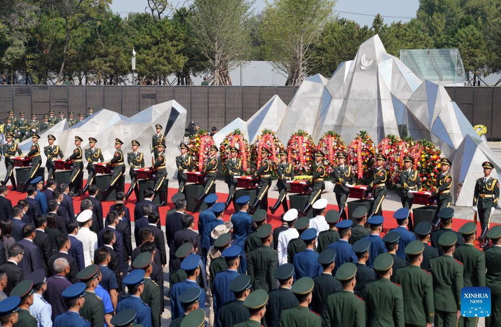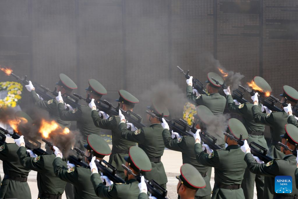 SHENYANG, Sept. 13 (Xinhua) -- Twenty-seven guards fired 12 rounds in salute on Saturday morning, their rifles echoing across the solemn grounds of a martyrs' cemetery in Shenyang, capital of northeast China's Liaoning Province, in tribute to fallen heroes.