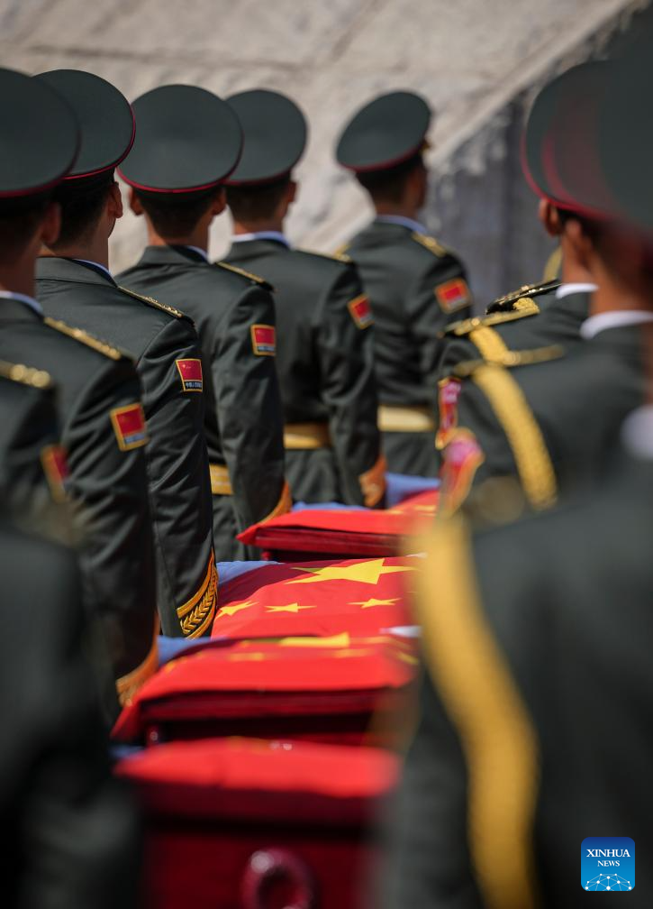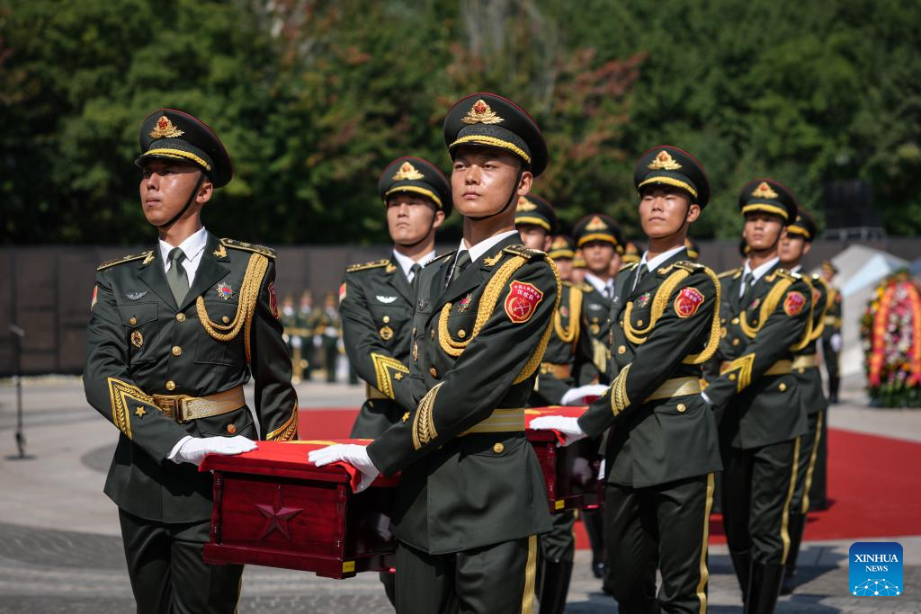 A burial ceremony for the remains of Chinese People's Volunteers (CPV) martyrs is held at the CPV martyrs' cemetery in Shenyang, northeast China's Liaoning Province, Sept. 13, 2025. The remains of 30 Chinese People's Volunteers (CPV) soldiers who lost their lives during the War to Resist U.S. Aggression and Aid Korea (1950-1953) were laid to rest on Saturday in Shenyang, capital of northeast China's Liaoning Province.