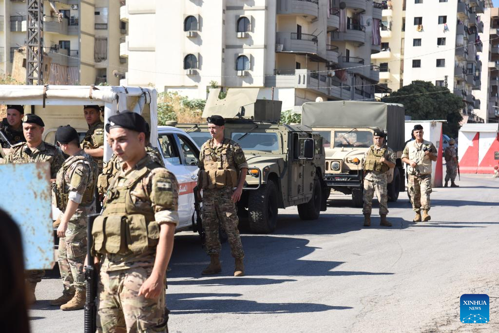 Lebanese army soldiers oversee the handover of weapons from Beddawi Camp in Lebanon's northern city of Tripoli on Sept. 13, 2025. Palestinian factions in refugee camps in northern and southern Lebanon handed over weapons to the Lebanese army on Saturday, local media reported. According to Lebanon's National News Agency, the handover began at Beddawi Camp in northern Lebanon, from inside the Fatah Movement headquarters. (Photo by Khaled Habashiti/Xinhua)