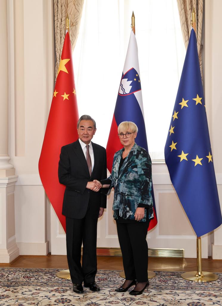 Wang conveyed Xi's greetings. He said that Slovenia practices "small country, big diplomacy" with a global vision, and regards China as a partner rather than a rival, which serves the interests of all parties, including Slovenia itself.