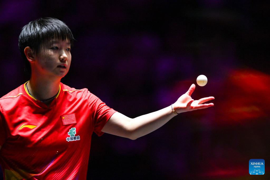 Wang Chuqin came out the sole survivor of the all-time leading China team in the men's singles, sealing a 4-0 victory over Lin Yun-Ju of Chinese Taipei, despite encountering some minor challenges in the second and third games. Wang said that Lin's style of play "is very advanced," and he just tried to make his serving and receiving as sharp as possible.