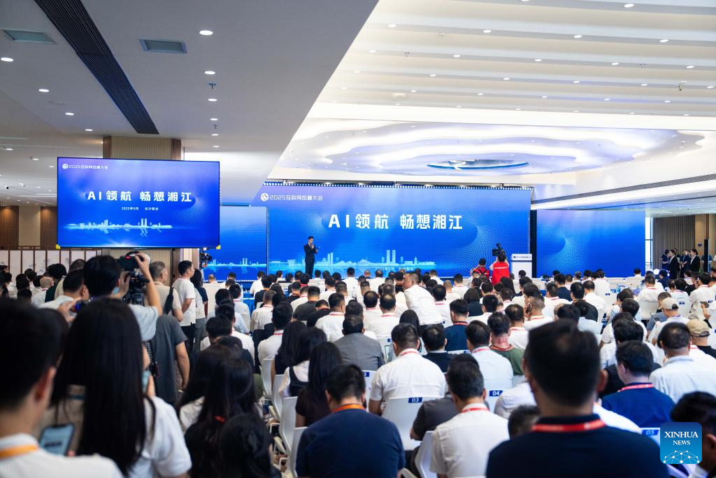 This photo taken on Sept. 15, 2025 shows a scene during the Internet Yuelu Summit 2025 in Xiangjiang New Area of Changsha, central China's Hunan Province. Focusing on cutting-edge technologies such as artificial intelligence, the summit kicked off here on Monday. (Xinhua/Chen Sihan)