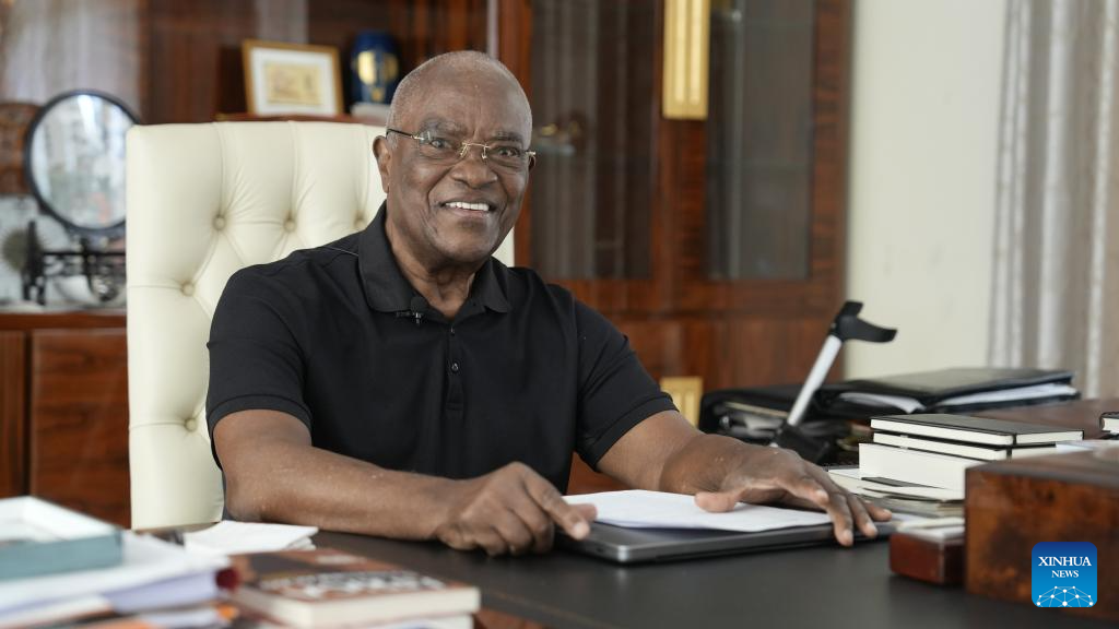Manuel Pinto da Costa, former president of Sao Tome and Principe, is pictured during an interview with Xinhua on Aug. 19, 2025. (Xinhua/Liu Jie)