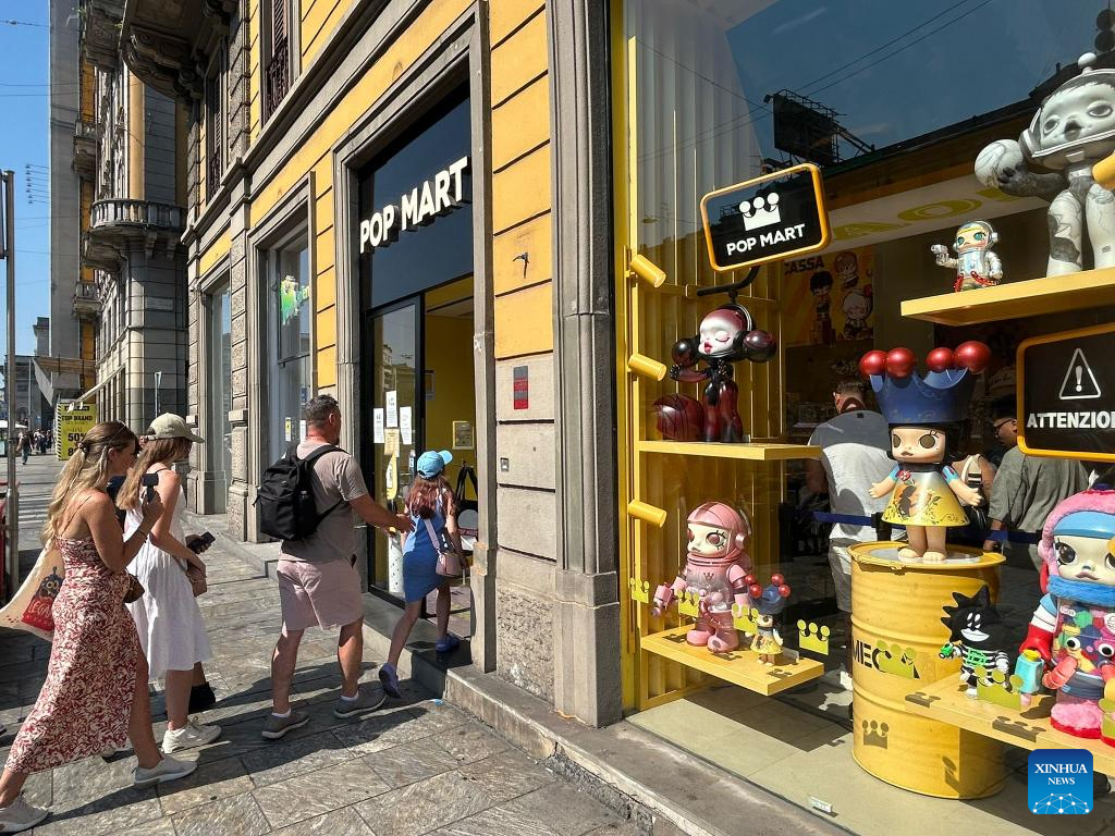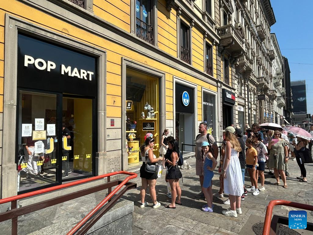 People line up to enter a POP MART store in Milan, Italy, Aug. 9, 2025. (Photo by Michele Novaga/Xinhua)