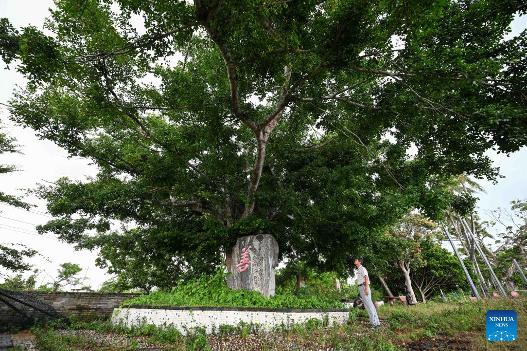 This photo taken on Sept. 10, 2025 shows an ancient tree in Jiamei Village, Wenchang City, south China's Hainan Province. In recent years, Jiamei Village of Hainan Province has been advancing its rural revitalization. The village has developed industries such as cultural tourism, yellow cattle farming, fruit and vegetable cultivation, and aquaculture drawing on its rich history, culture and natural resources. In 2023, Jiamei Village was listed in the sixth batch of traditional Chinese villages catalog. (Xinhua/Pu Xiaoxu)