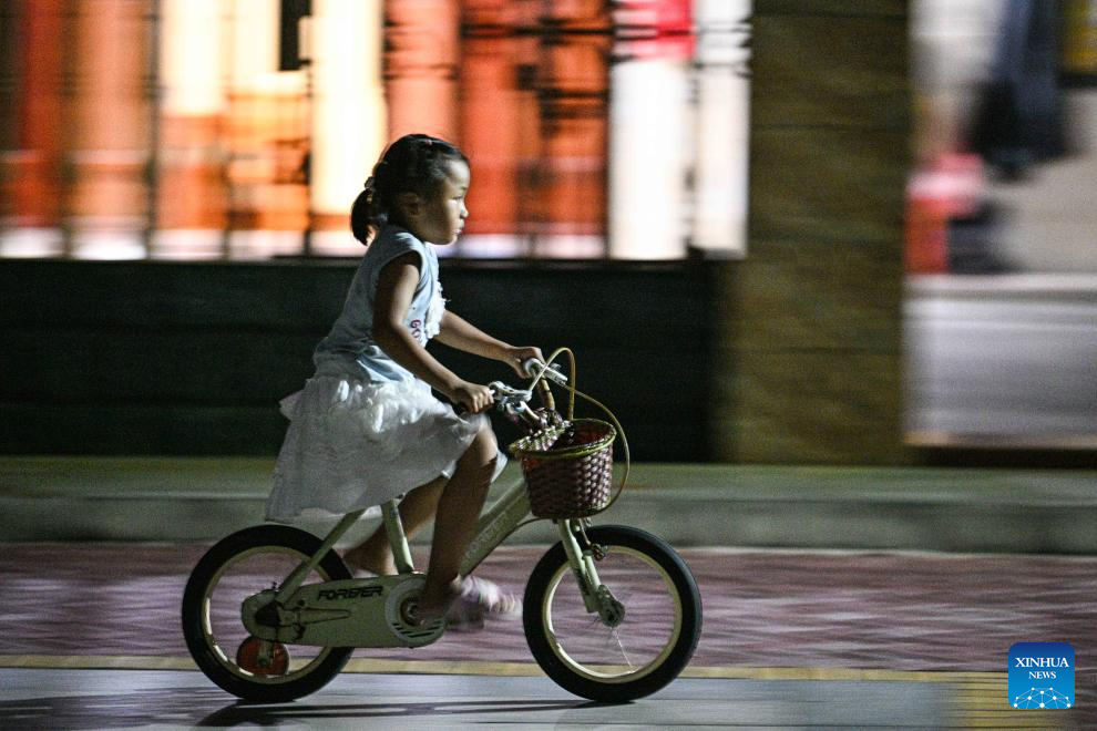 A child rides a bicycle in Jiamei Village, Wenchang City, south China's Hainan Province, Sept. 3, 2025. In recent years, Jiamei Village of Hainan Province has been advancing its rural revitalization. The village has developed industries such as cultural tourism, yellow cattle farming, fruit and vegetable cultivation, and aquaculture drawing on its rich history, culture and natural resources. In 2023, Jiamei Village was listed in the sixth batch of traditional Chinese villages catalog. (Xinhua/Pu Xiaoxu)