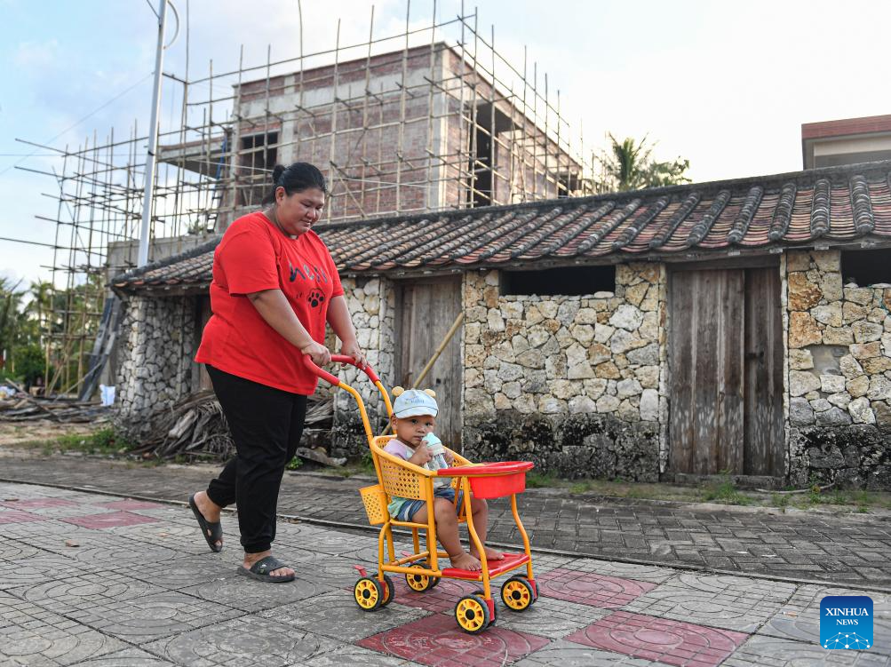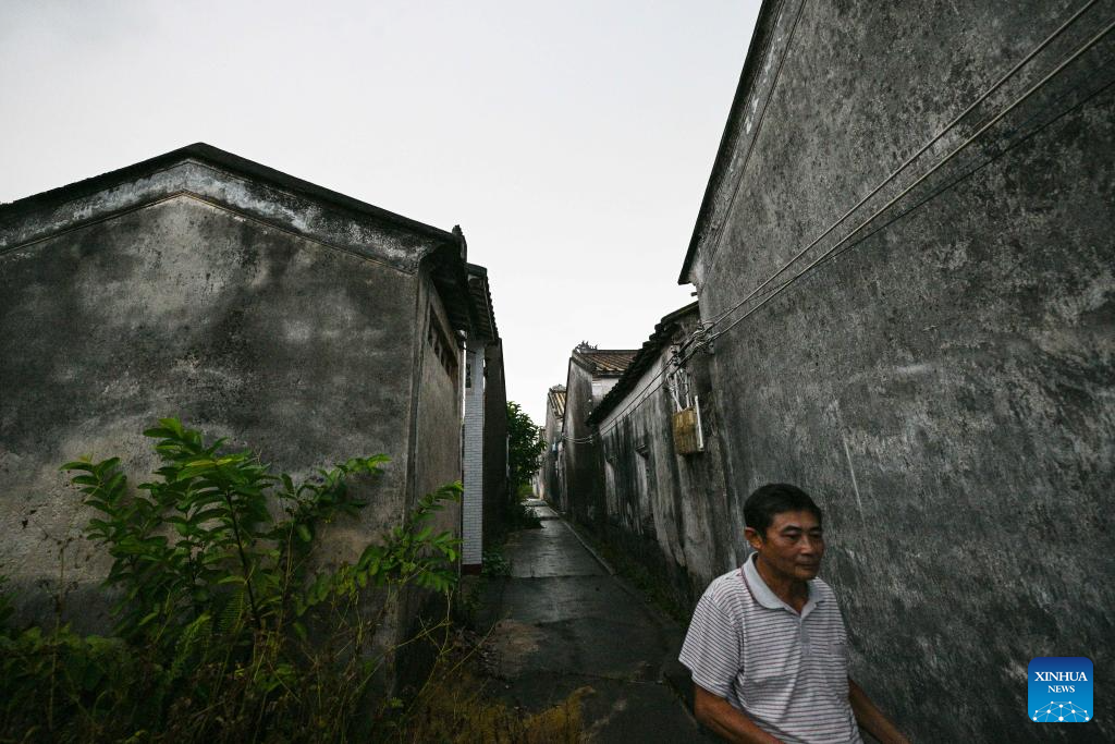 A villager walks past a traditional house in Jiamei Village, Wenchang City, south China's Hainan Province, Sept. 4, 2025. In recent years, Jiamei Village of Hainan Province has been advancing its rural revitalization. The village has developed industries such as cultural tourism, yellow cattle farming, fruit and vegetable cultivation, and aquaculture drawing on its rich history, culture and natural resources. In 2023, Jiamei Village was listed in the sixth batch of traditional Chinese villages catalog. (Xinhua/Pu Xiaoxu)