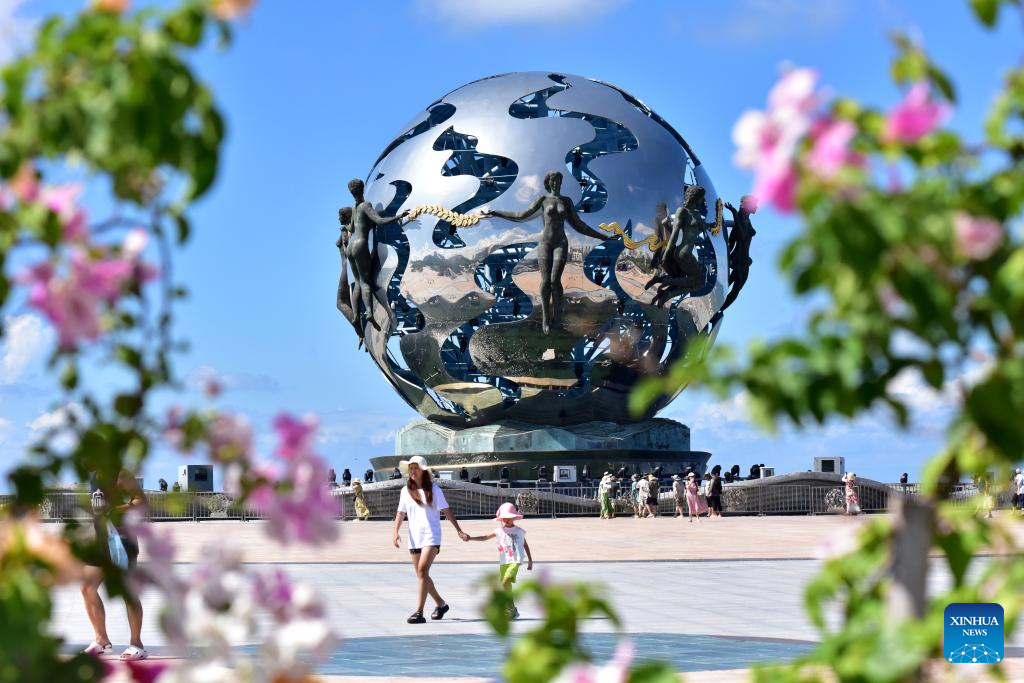 Tourists visit the Yintan (silver beach) scenic area in Beihai City, south China's Guangxi Zhuang Autonomous Region, Sept. 13, 2025. People across the country enjoy the autumn scenery in various ways during the weekend. (Photo by Liao Zuping/Xinhua)