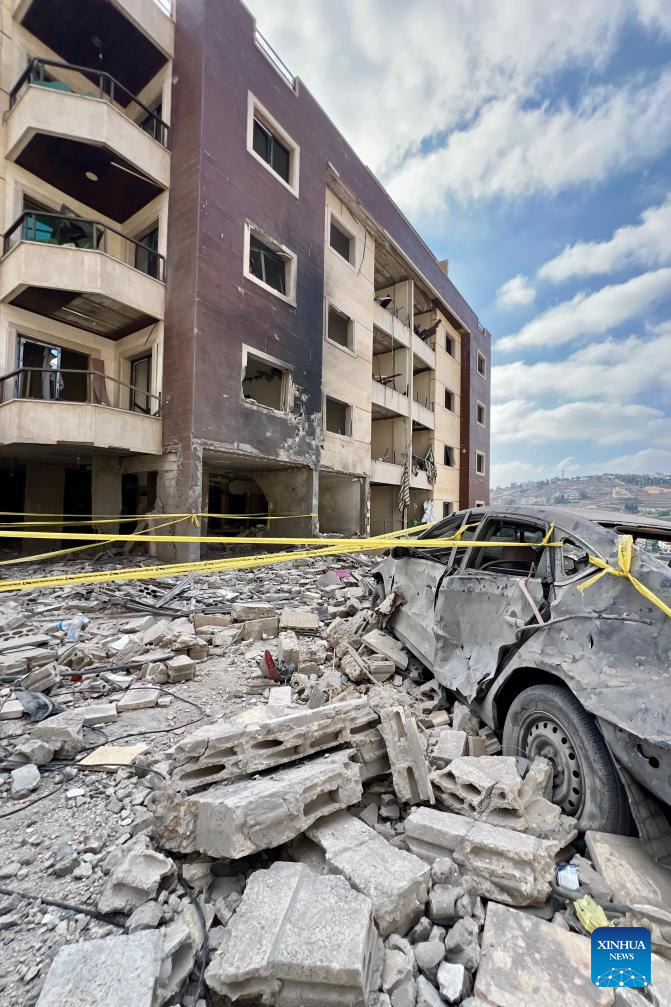 This photo taken on Sept. 16 shows a building attacked by Israeli forces in Nabatieh, southern Lebanon. The Israeli military said late on Monday it struck a Hezbollah command site in southern Lebanon, as cross-border tensions persist despite a ceasefire. (Photo by Ali Hashisho/Xinhua)