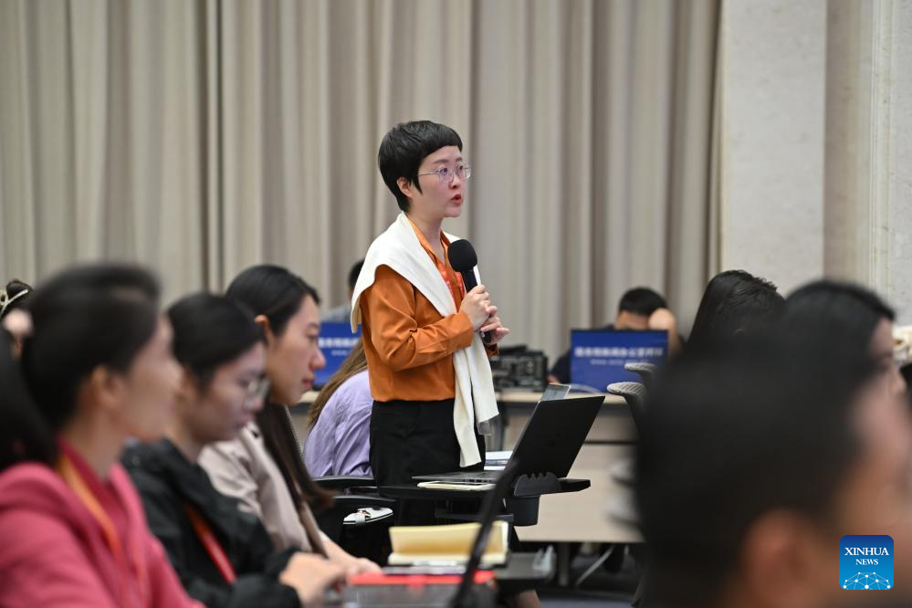 A journalist asks questions at a press conference held by the State Council Information Office (SCIO) on achievements in agricultural and rural development during the 14th Five-Year Plan period (2021-2025) in Beijing, capital of China, Sept. 16, 2025. (Xinhua/Chen Yehua)
