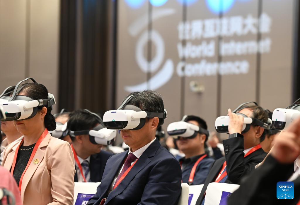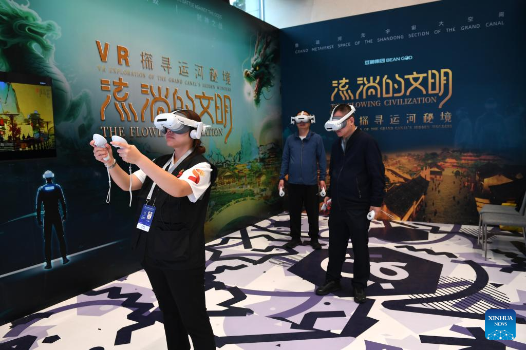 Guests watch digital content on the Grand Canal with VR devices during an exhibition of the 2025 World Internet Conference Cultural Heritage Digitalization Forum in Xi'an, northwest China's Shaanxi Province, Sept. 17, 2025. The forum opened on Wednesday in Xi'an, home to the world-famous Terracotta Warriors.