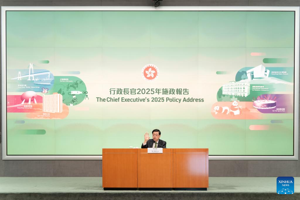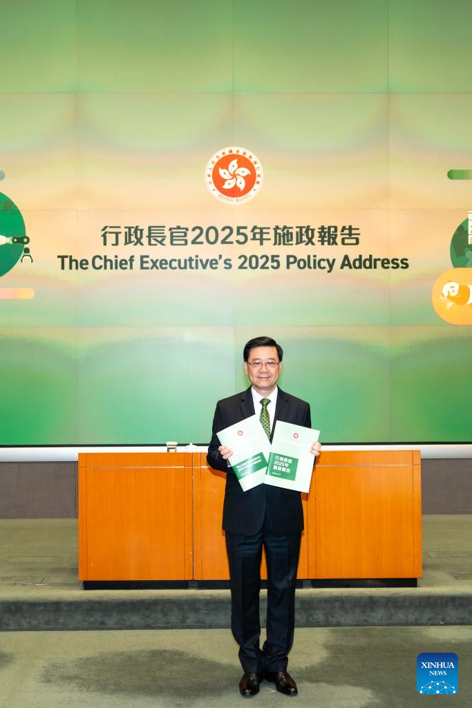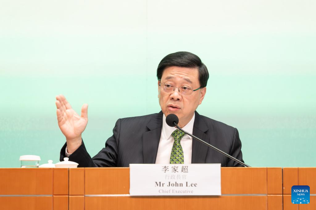 John Lee, chief executive of China's Hong Kong Special Administrative Region (HKSAR), attends a press conference on the delivery of his policy address in Hong Kong, south China, Sept. 17, 2025. (Xinhua/Zhu Wei)