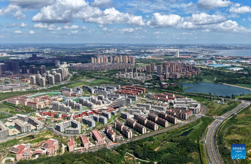 This aerial drone photo taken on July 29, 2025 shows a view of Qingdao Sino-German Ecopark in Qingdao, east China's Shandong Province. (Xinhua/Li Ziheng)
