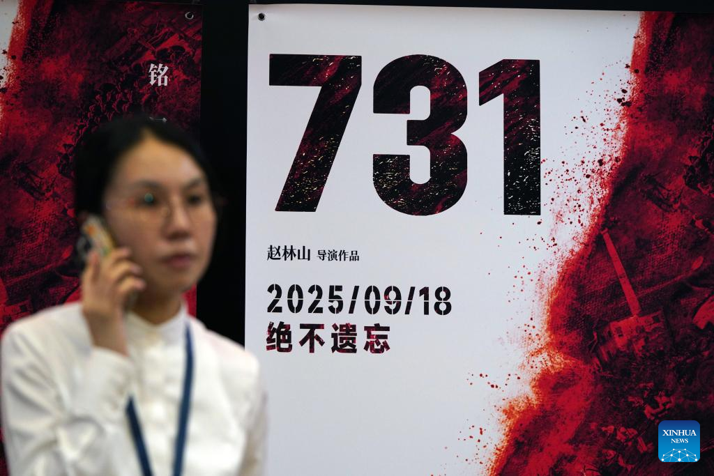 People are seen at the world premiere of the film "Evil Unbound" in Harbin, northeast China's Heilongjiang Province, Sept. 17, 2025. "Evil Unbound," a film about Unit 731, held its world premiere on Wednesday in Harbin, where this notorious Japanese germ warfare unit was once based, highlighting the atrocities committed by Japanese invading forces in China in World War II.
