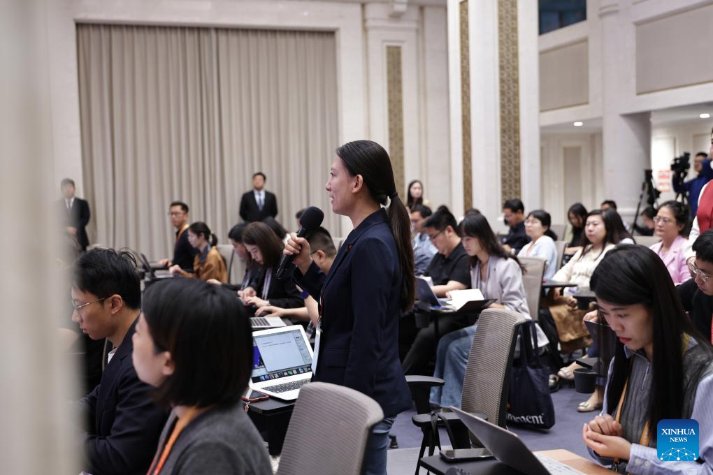 The State Council Information Office (SCIO) holds a press conference on forging ahead during the 14th Five-Year Plan period (2021-2025) and driving the high-quality growth of central SOEs in Beijing, capital of China, Sept. 17, 2025. (Xinhua/Zhang Yuwei)