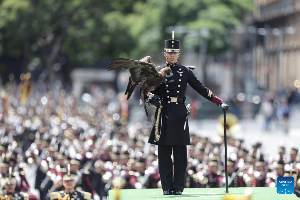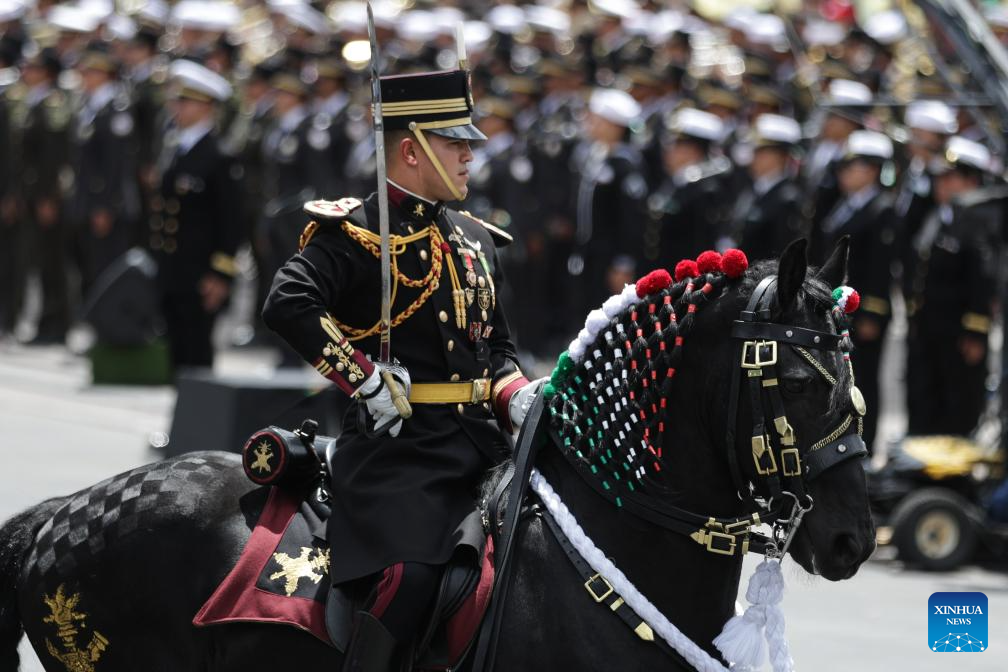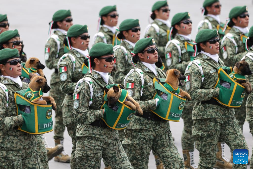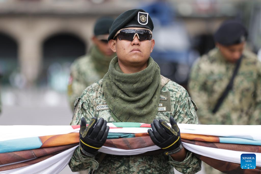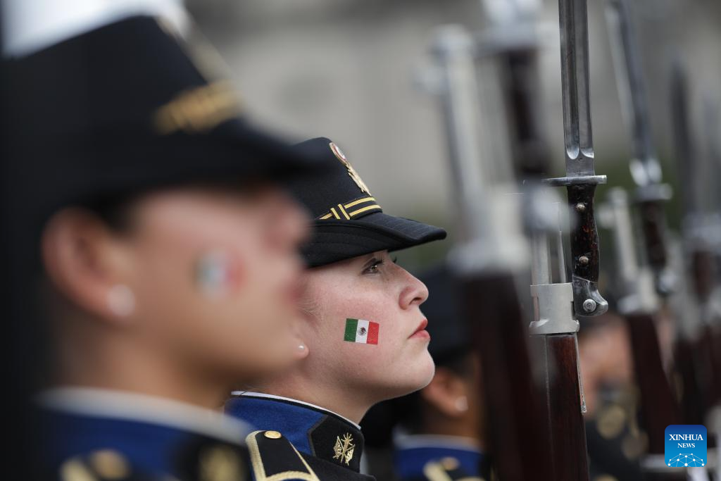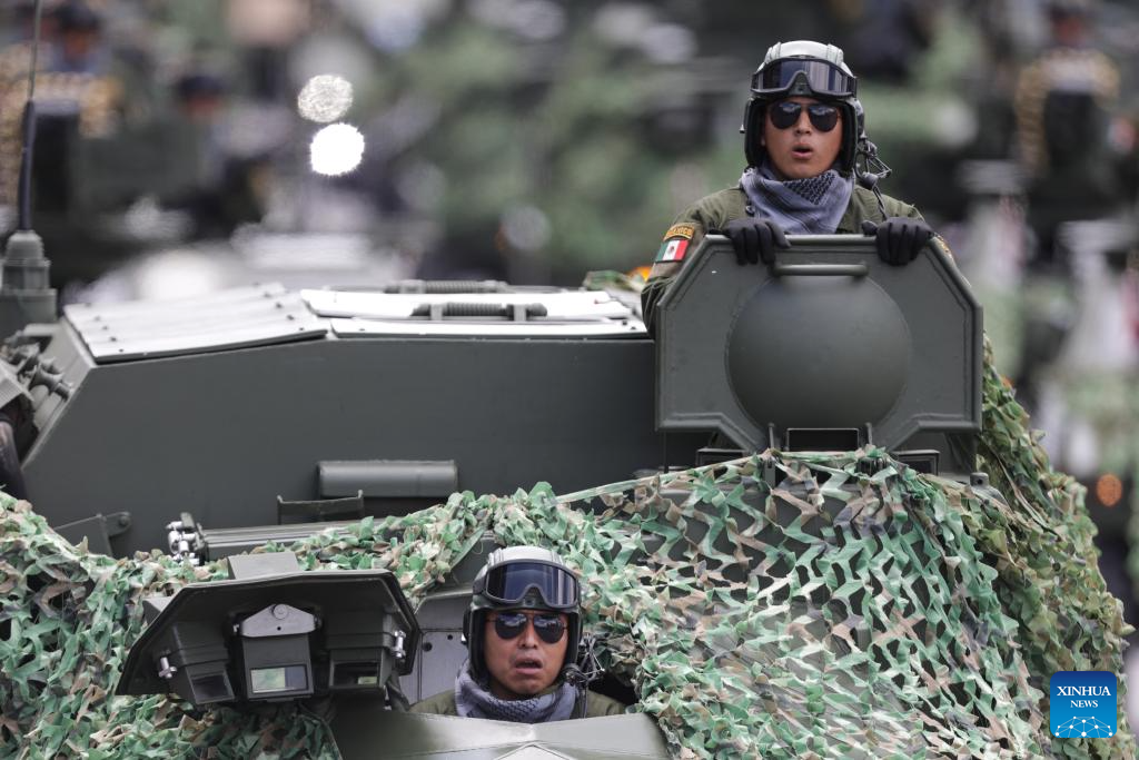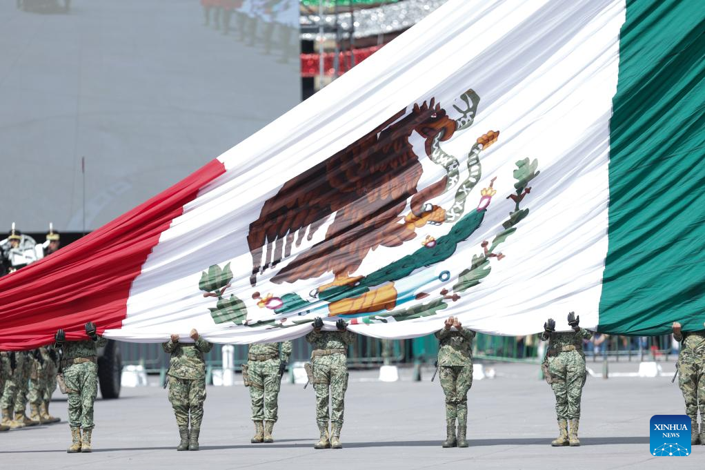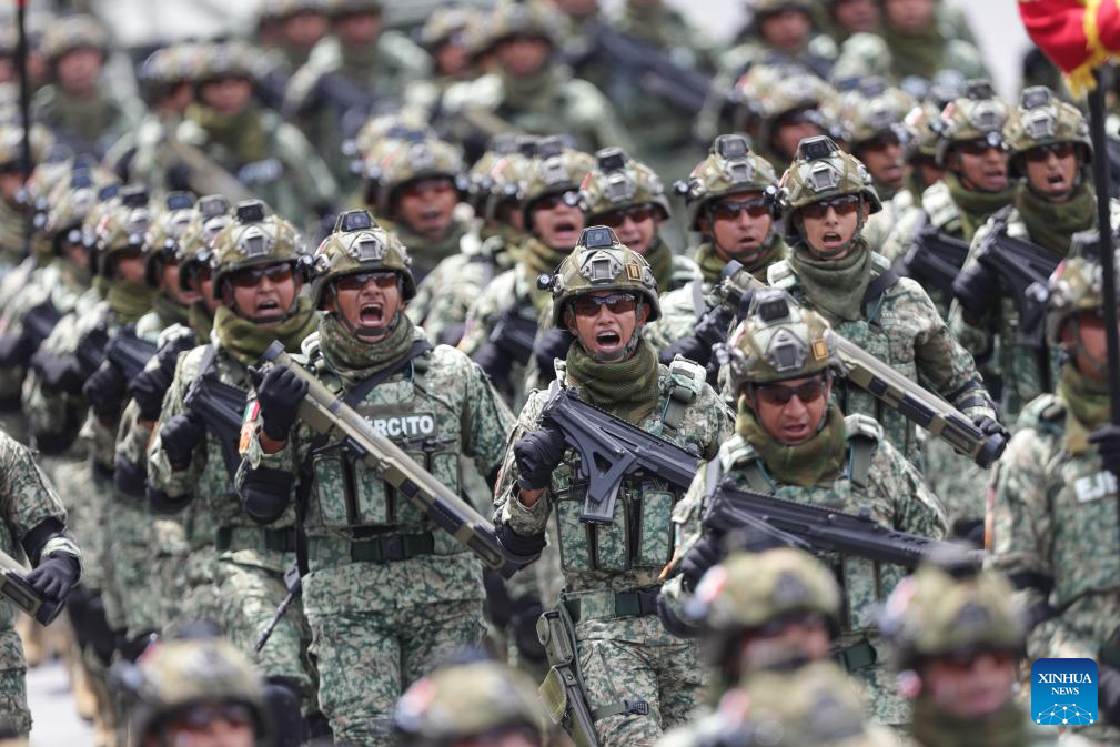 Soldiers participate in an Independence Day military parade at the Zocalo Square in Mexico City, Mexico, on Sept. 16, 2025. (Photo by Francisco Canedo/Xinhua)
