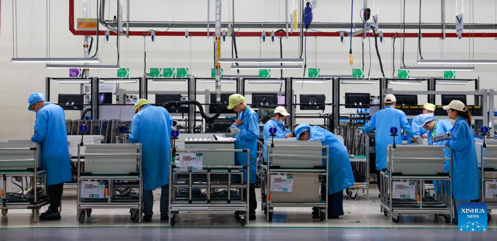 Staff members work in a workshop of an electronic company in the high-tech zone of Wuxi, east China's Jiangsu Province, Sept. 15, 2025. Wuxi City has been actively building an open economy in recent years. The number of enterprises with actual foreign trade transactions in the city has exceeded 13,000, and their annual foreign trade value stood at more than 100 billion US dollars over the past four years.