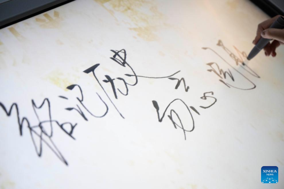 A visitor leaves a note at the Exhibition Hall of Evidence of Crimes Committed by Unit 731 of the Japanese Imperial Army in Harbin, capital of northeast China's Heilongjiang Province, Sept. 18, 2025. "The real history is far more brutal than what the film can depict," said Jin Chengmin, curator of the Exhibition Hall of Evidence of Crime Committed by Unit 731 of the Japanese Imperial Army.