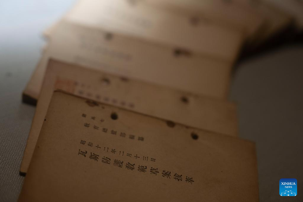 This photo taken on Sept. 18, 2025 shows teaching materials of Unit 731 on display at the Exhibition Hall of Evidence of Crimes Committed by Unit 731 of the Japanese Imperial Army in Harbin, capital of northeast China's Heilongjiang Province. "The real history is far more brutal than what the film can depict," said Jin Chengmin, curator of the Exhibition Hall of Evidence of Crime Committed by Unit 731 of the Japanese Imperial Army.