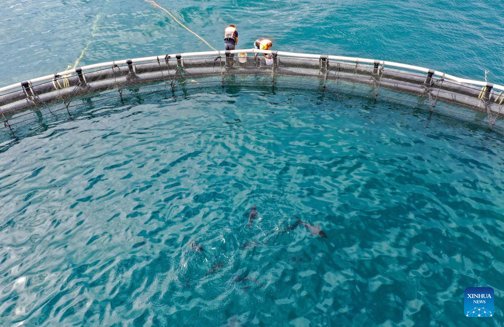 Thanks to technological breakthroughs, the South China Sea Fisheries Research Institute of the Chinese Academy of Fishery Sciences established an offshore yellowfin tuna breeding base in Lingshui, which has achieved artificial spawning and hatching of yellowfin tunas. (Xinhua/Guo Cheng)