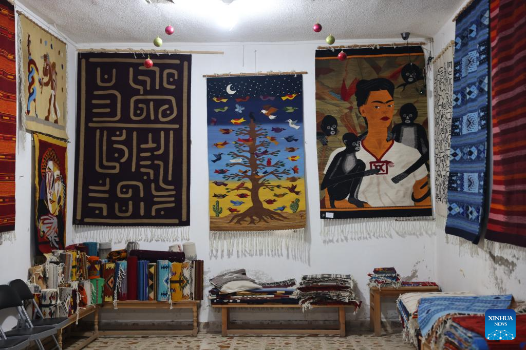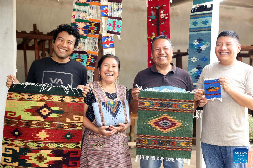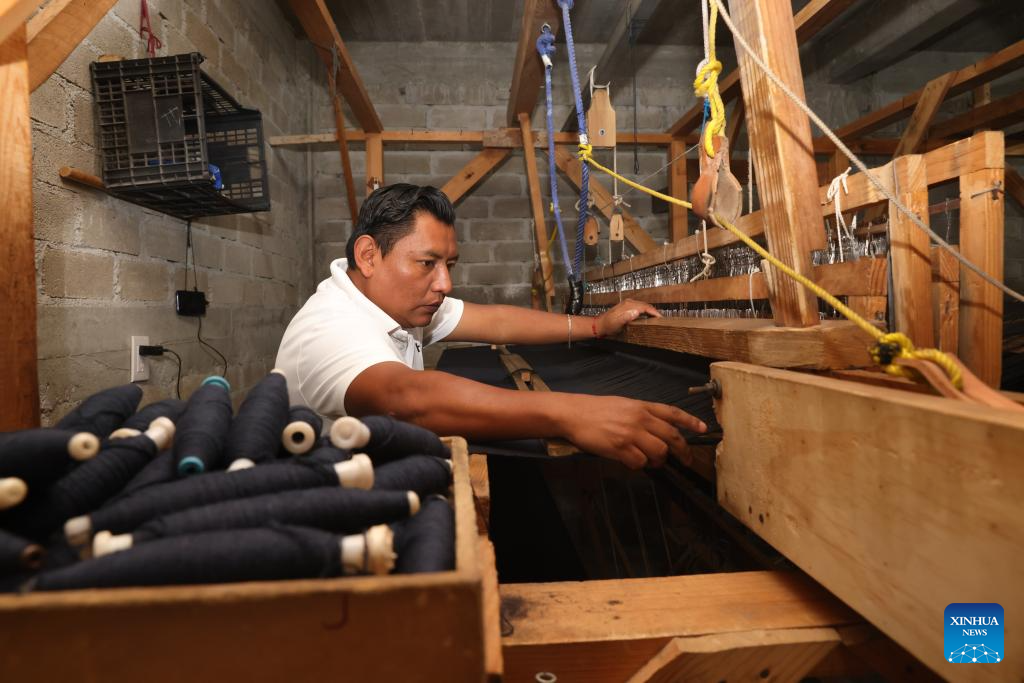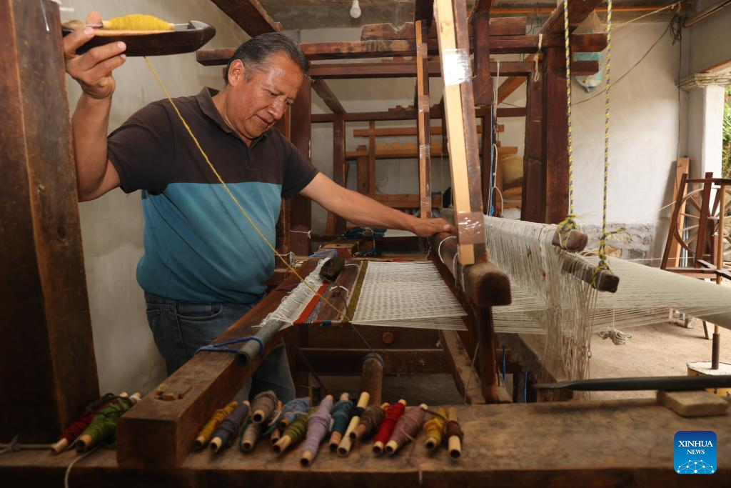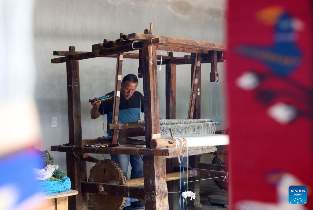 In southern Mexico's Oaxaca State, textile weaving has a long history. In workshops, artisans spin cotton or wool into yarn, dye it with pigments such as cochineal, and then weave it line by line on the loom into everyday items such as blankets, rugs, and shawls. These handmade textiles are not only a vital source of income for many families but also an essential part of Oaxaca's rich and diverse cultural heritage. (Xinhua/Li Mengxin)