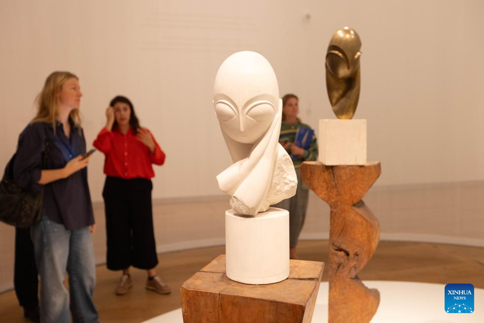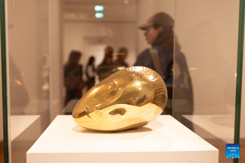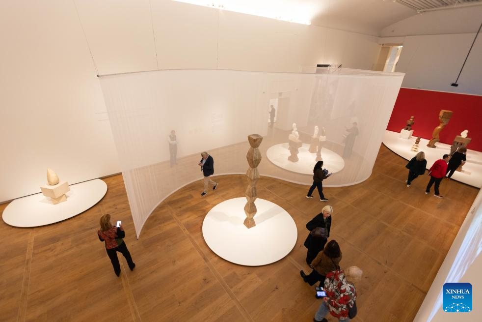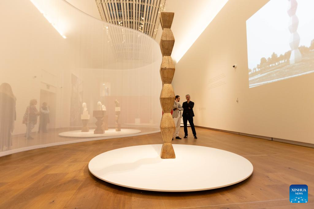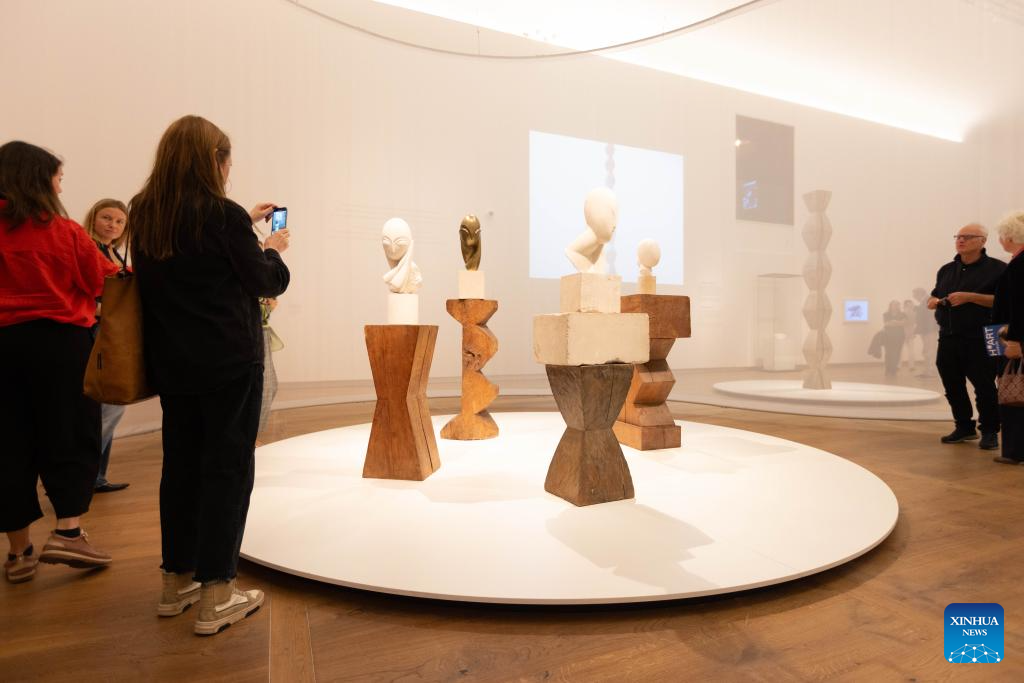 The exhibition, which will be opened on Saturday, showcases the works of Romanian sculptor Constantin Brancusi (1876-1957), featuring over 30 masterpieces on loan from the Centre Pompidou in Paris. It will last until Jan. 18, 2026. (Photo by Sylvia Lederer/Xinhua)