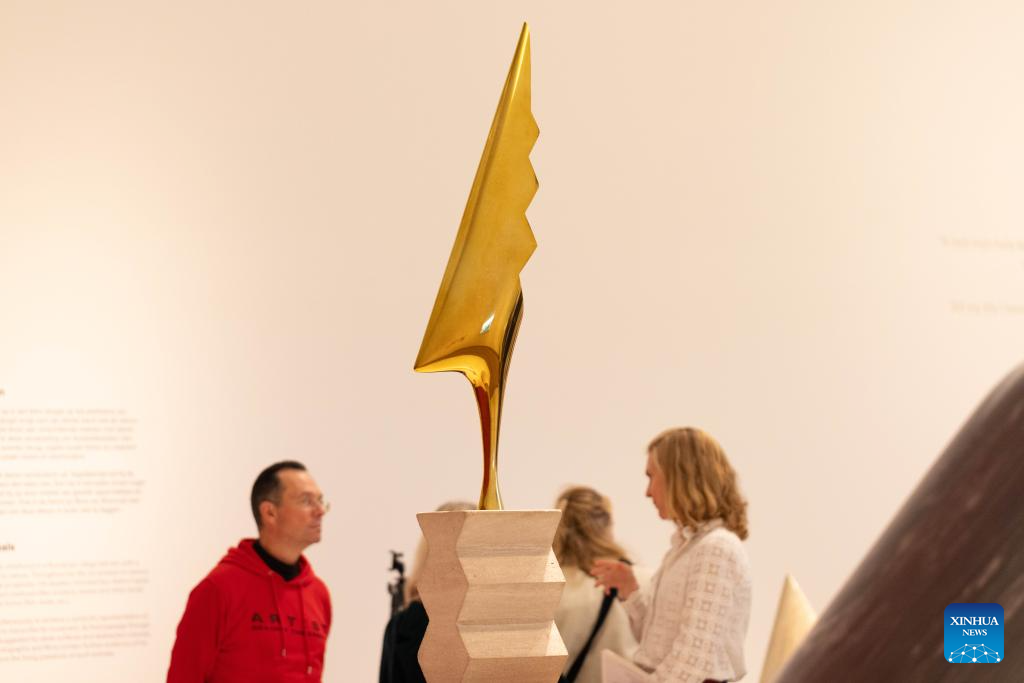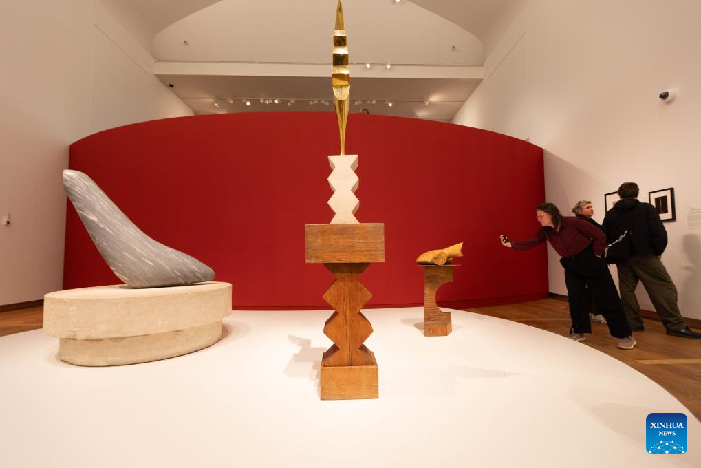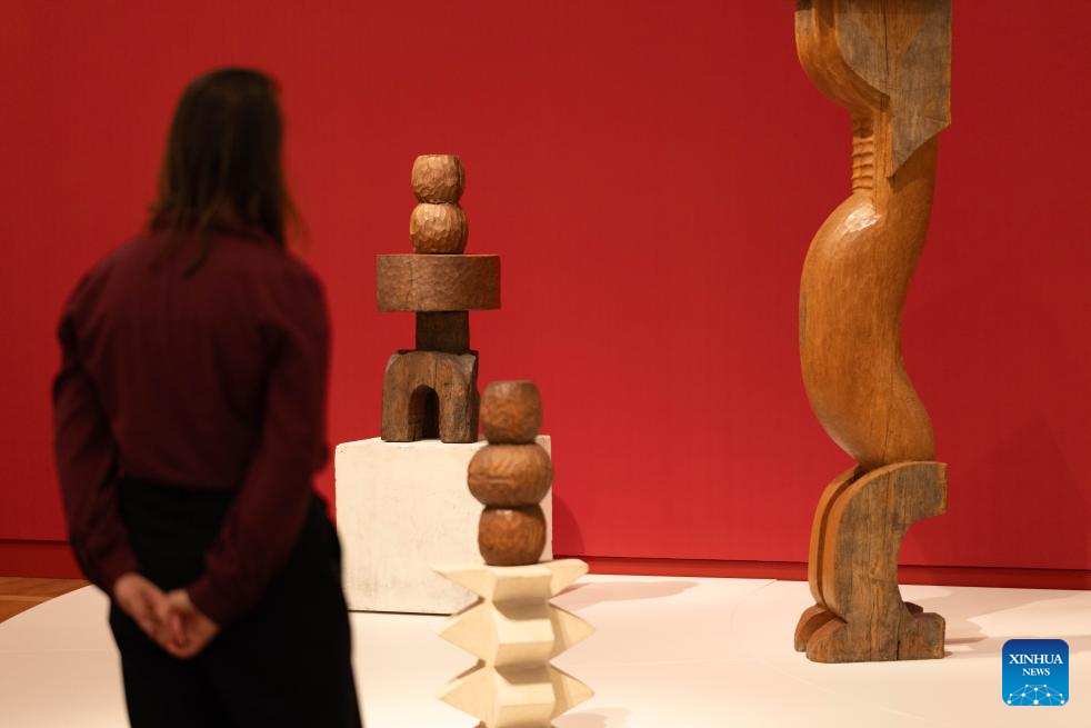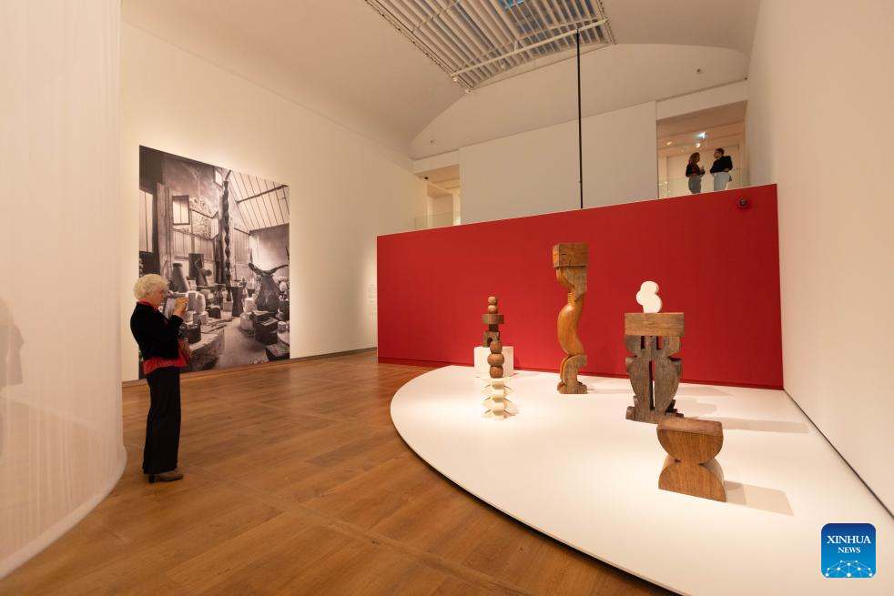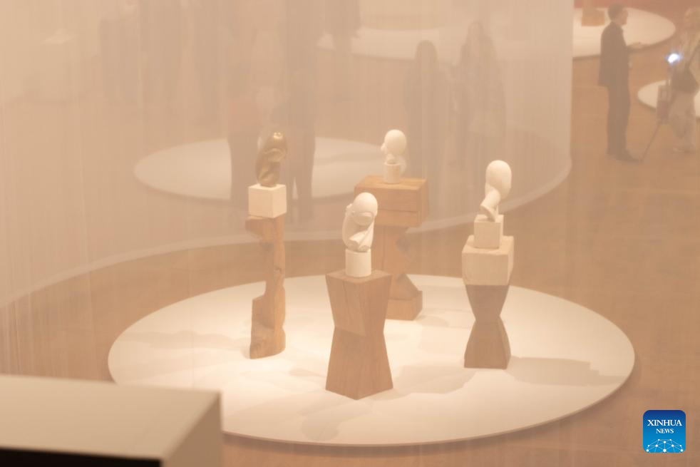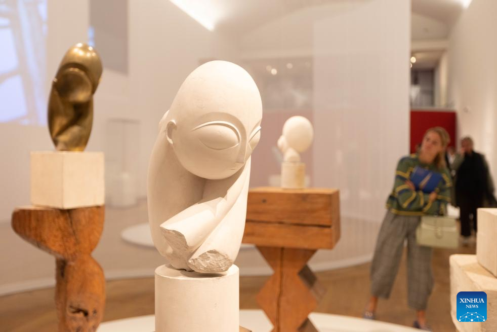 The exhibition, which will be opened on Saturday, showcases the works of Romanian sculptor Constantin Brancusi (1876-1957), featuring over 30 masterpieces on loan from the Centre Pompidou in Paris. It will last until Jan. 18, 2026. (Photo by Sylvia Lederer/Xinhua)