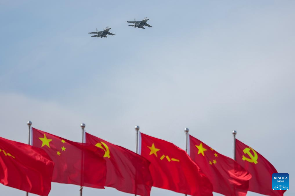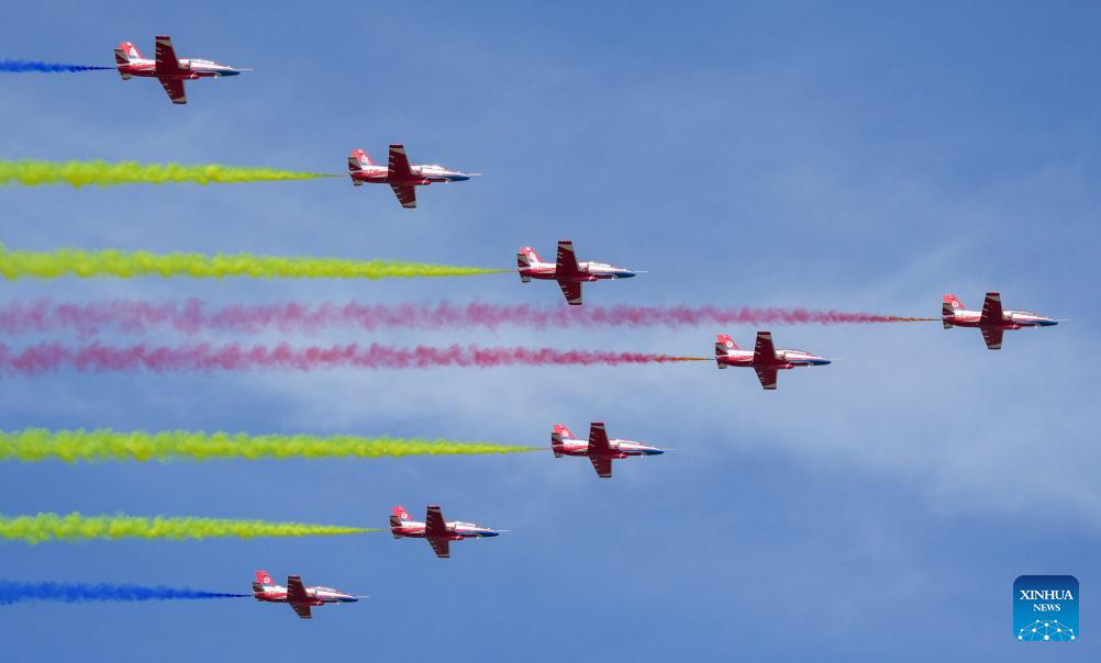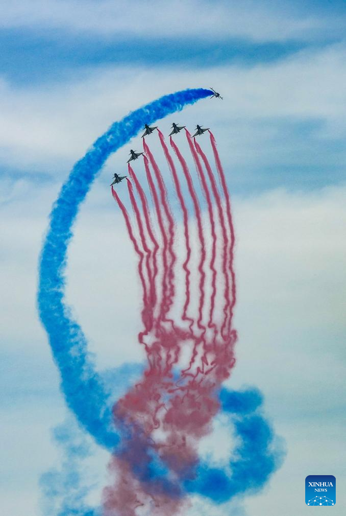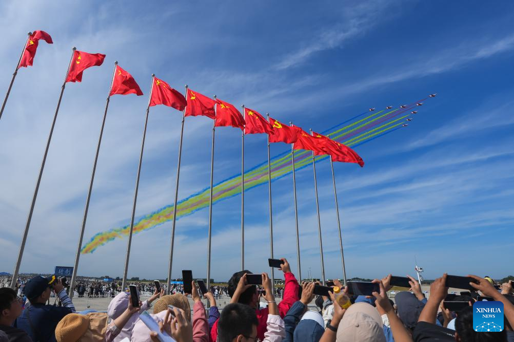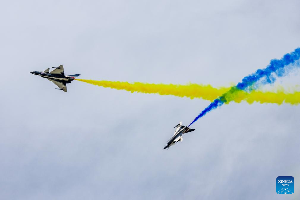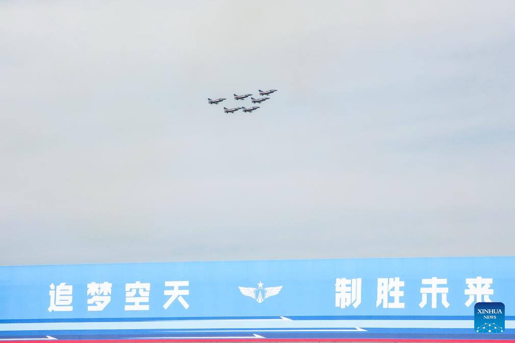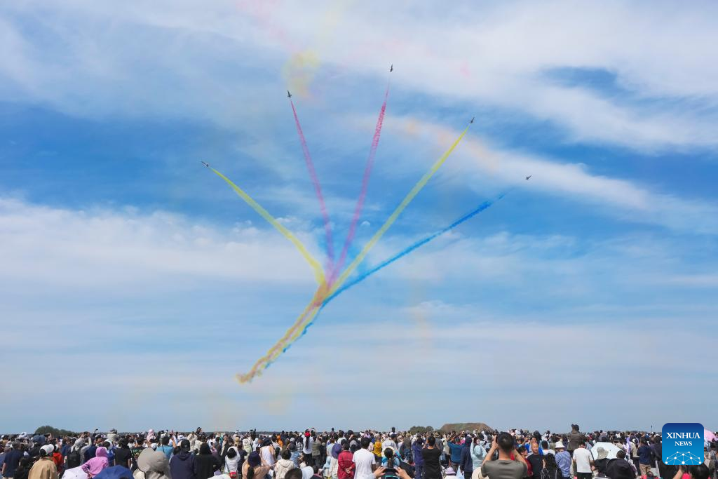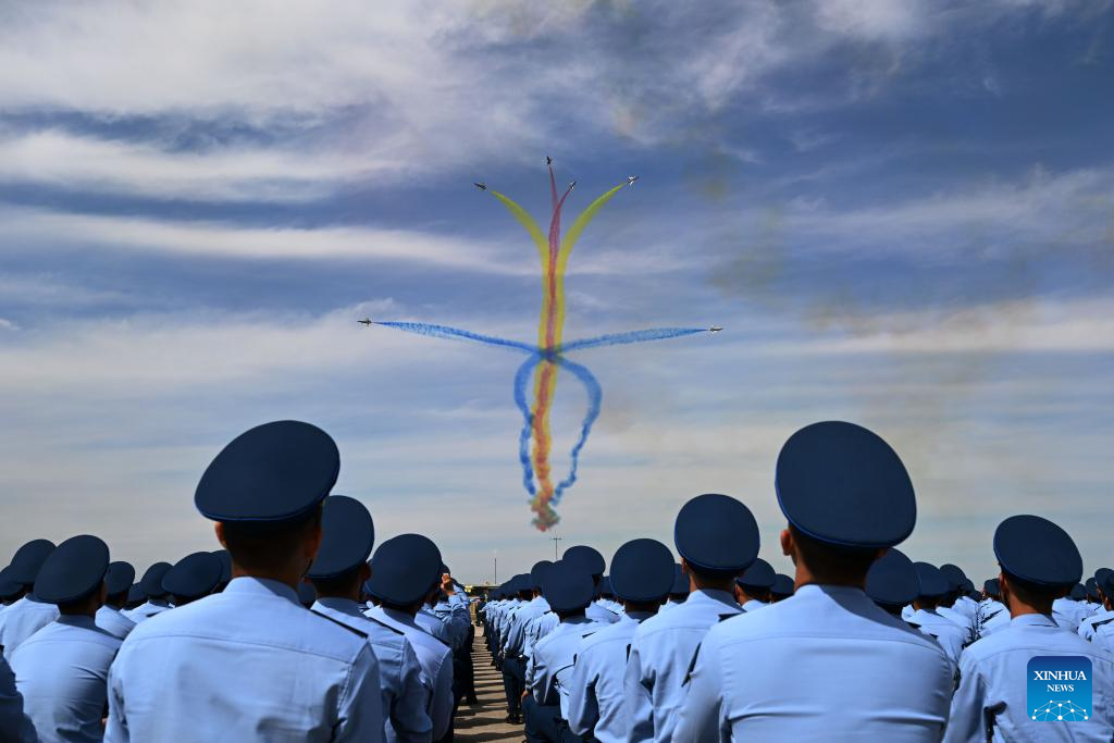 Aircraft of the Bayi Aerobatic Team of the Chinese People's Liberation Army Air Force perform during the 2025 aviation open-day activities of the Chinese People's Liberation Army Air Force and Changchun Air Show in Changchun, northeast China's Jilin Province, Sept. 19, 2025. The events kicked off here on Friday. (Xinhua/Tang Chengzhuo)