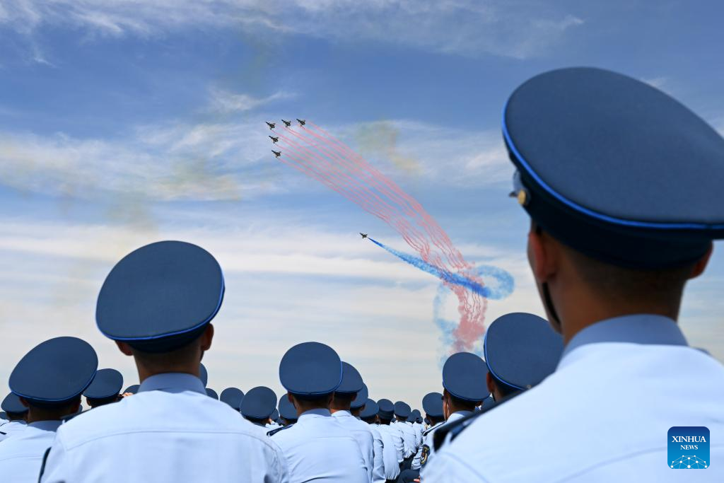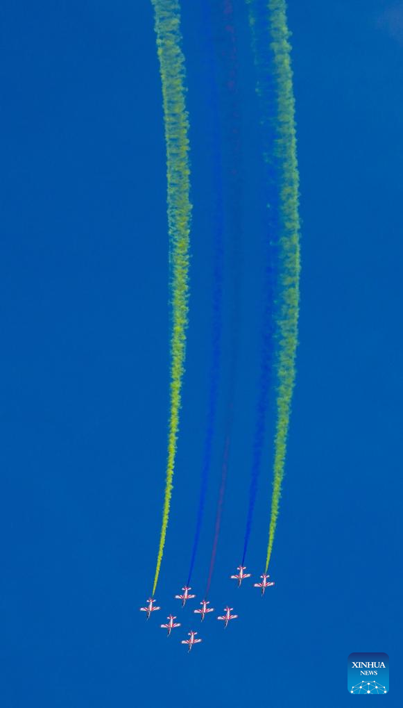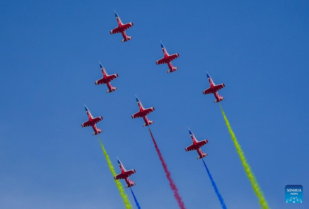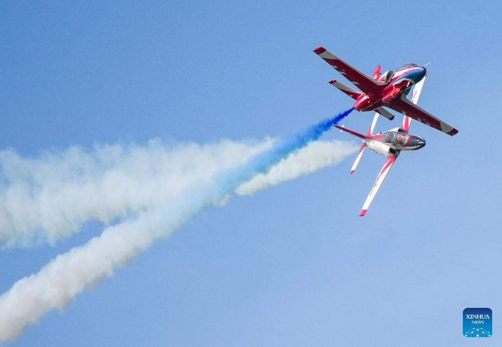 Aircraft of the Bayi Aerobatic Team of the Chinese People's Liberation Army Air Force perform during the 2025 aviation open-day activities of the Chinese People's Liberation Army Air Force and Changchun Air Show in Changchun, northeast China's Jilin Province, Sept. 19, 2025. The events kicked off here on Friday. (Xinhua/Zhang Nan)