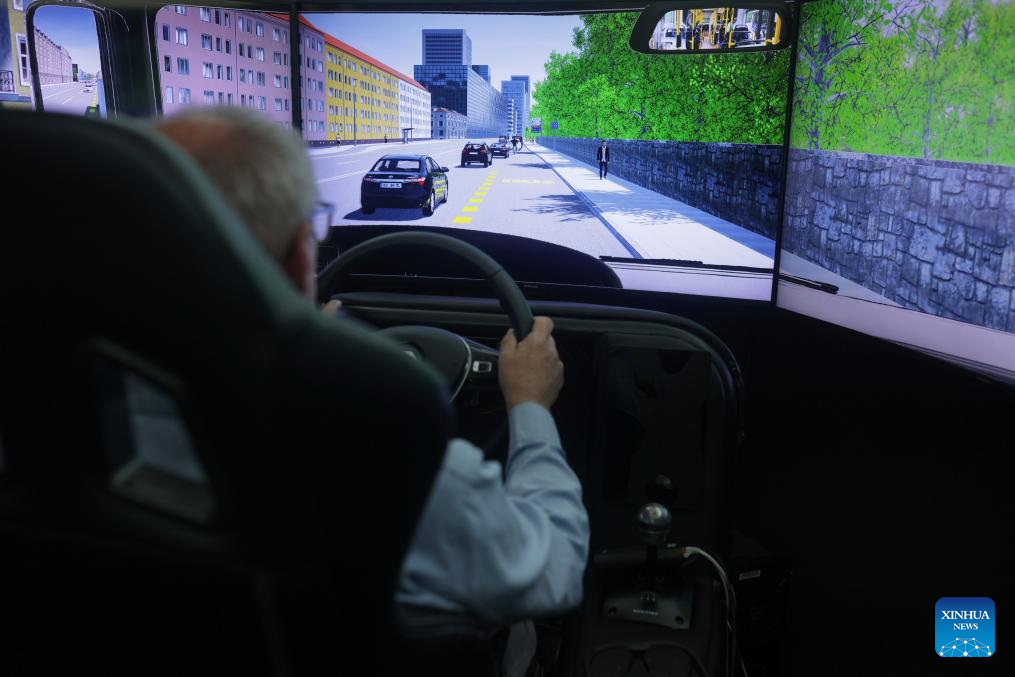 A visitor drives a bus in the driving simulator at Ljubljana Passenger Transport during an event to mark the European Mobility Week in Ljubljana, Slovenia, Sept. 18, 2025.
